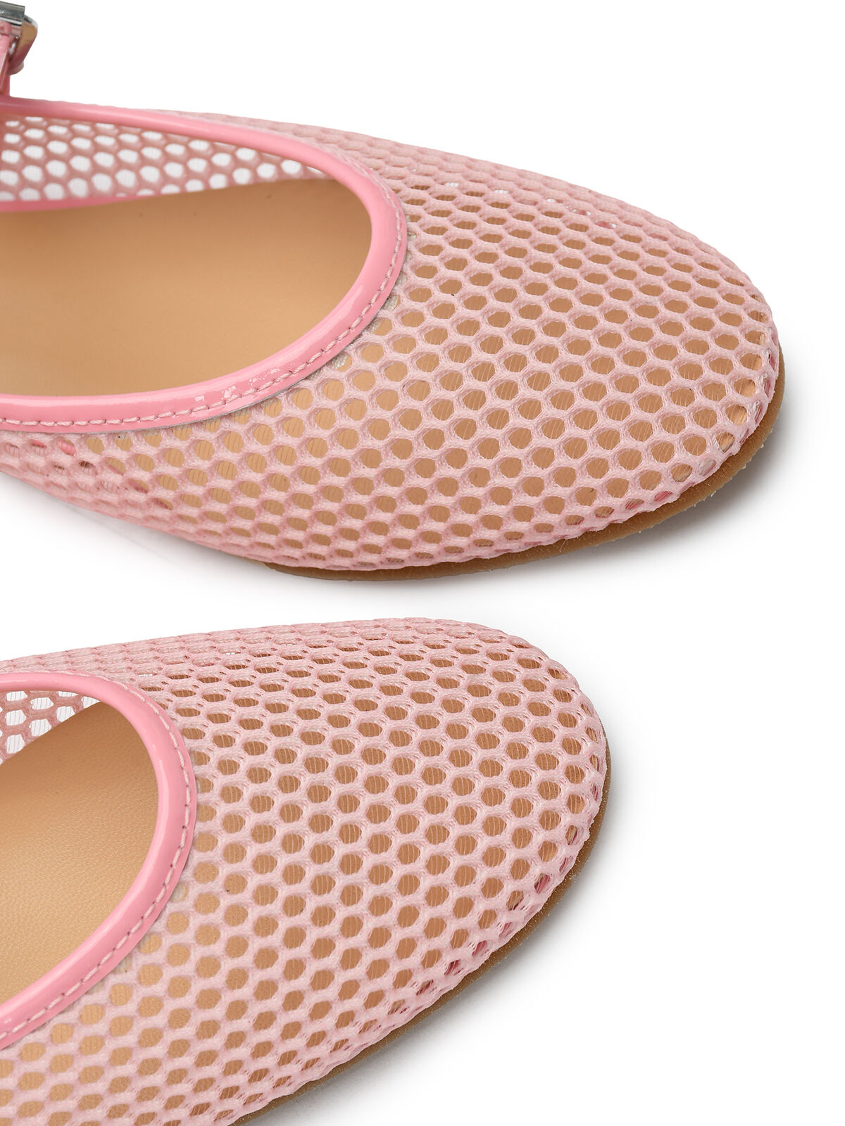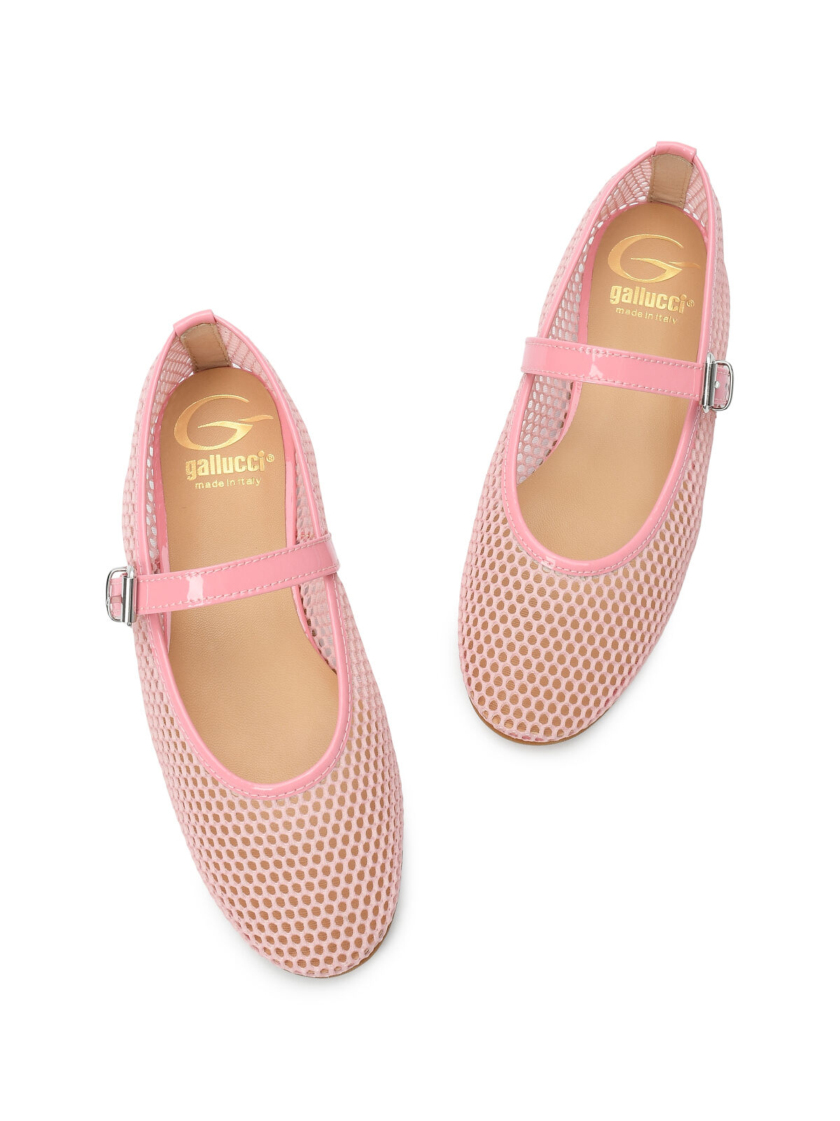 Туфли Gallucci для девочек выполнены из легкой розовой сетчатой ткани с застежкой на ремешке и металлической пряжкой, что обеспечивает удобную фиксацию на ноге. Верх на 95% состоит из полиэстера с добавлением 5% кожи, благодаря чему материал сочетает в себе прочность и мягкость. Внутренняя кожаная стелька гарантирует комфорт при длительной прогулке и способствует циркуляции воздуха внутри обуви. Подошва изготовлена из износостойкой резины, что обеспечивает хороший контакт с поверхностью и устойчивость.