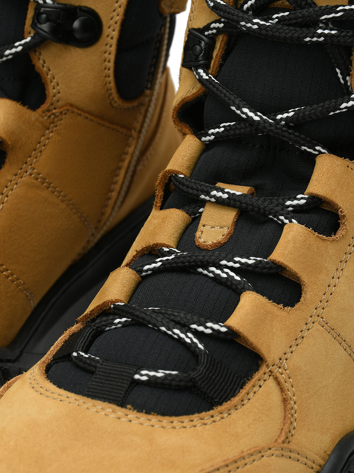 Эти высокие кеды словно созданы для динамичных будней подростка: спокойный бежевый цвет подчеркивает сдержанный стиль, а фактурная вставка из текстиля на заднике добавляет современный акцент. Верх из кожи с полиэстером сочетает мягкость и стойкость к износу, подкладка и стелька выполнены из прочного полиэстера. Нескользящая резиновая подошва обеспечивает уверенное движение в городе и на прогулке.