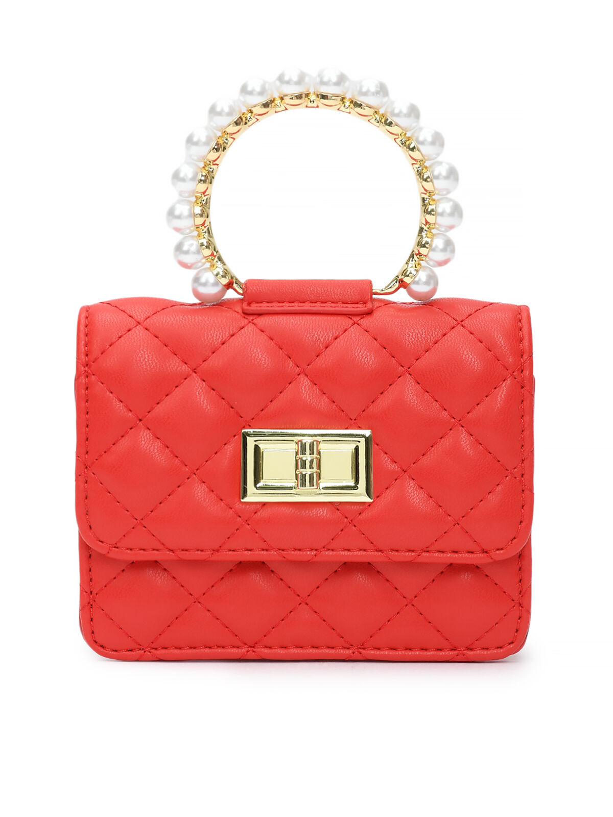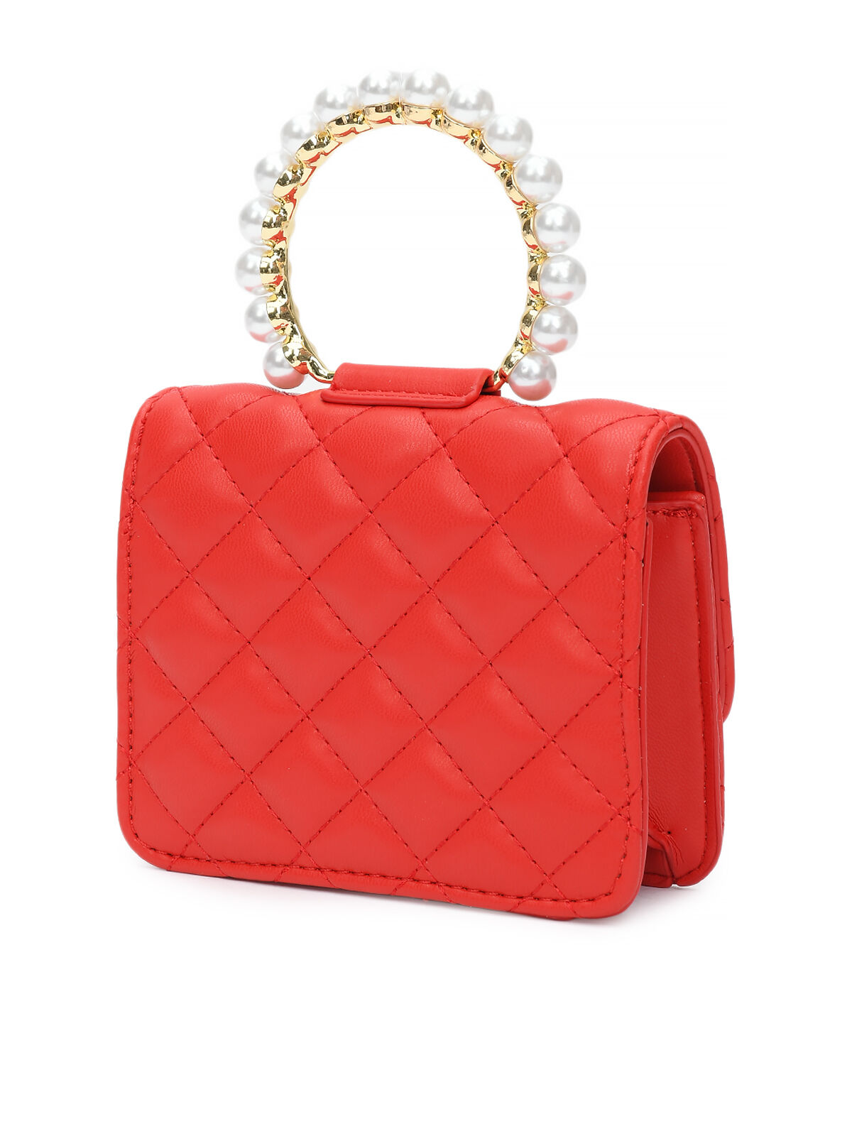 Сумка с ручкой из жемчужин, красная