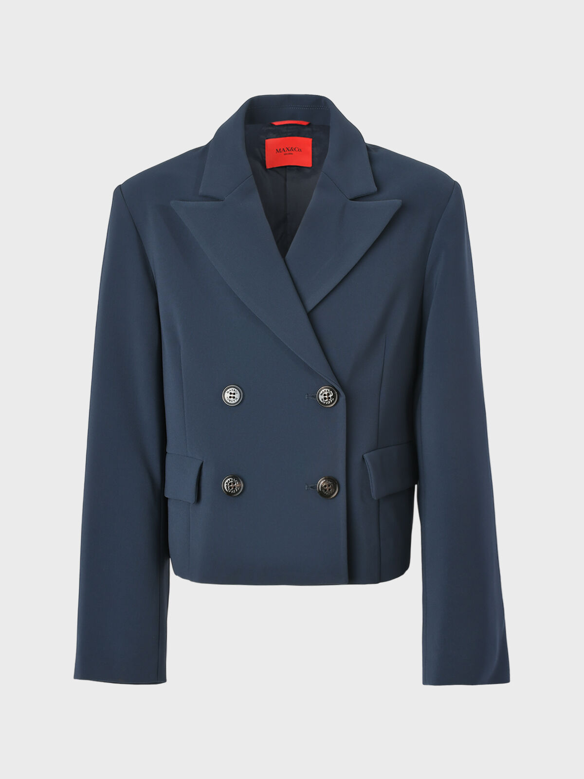 Укороченный двубортный пиджак, темно-синий