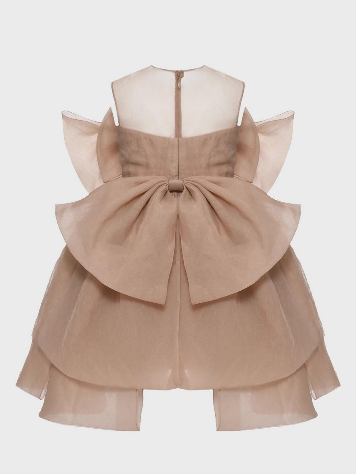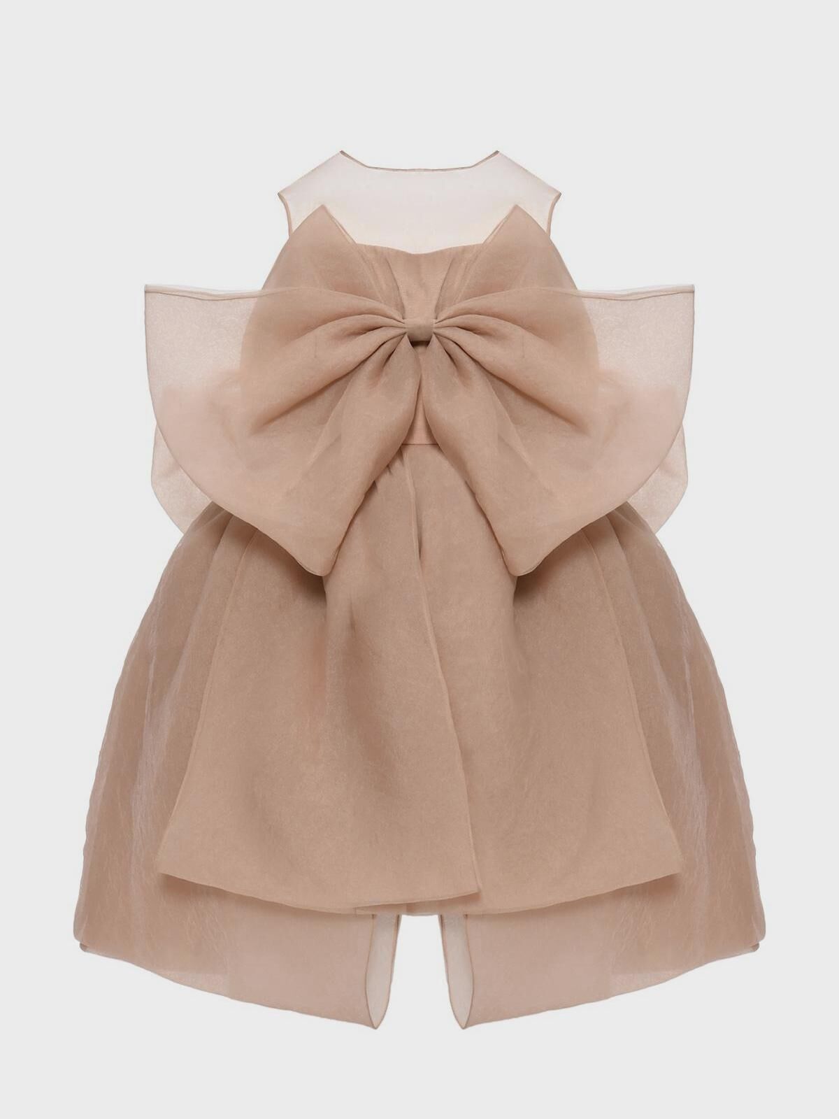 Платье с бантом, бежевое