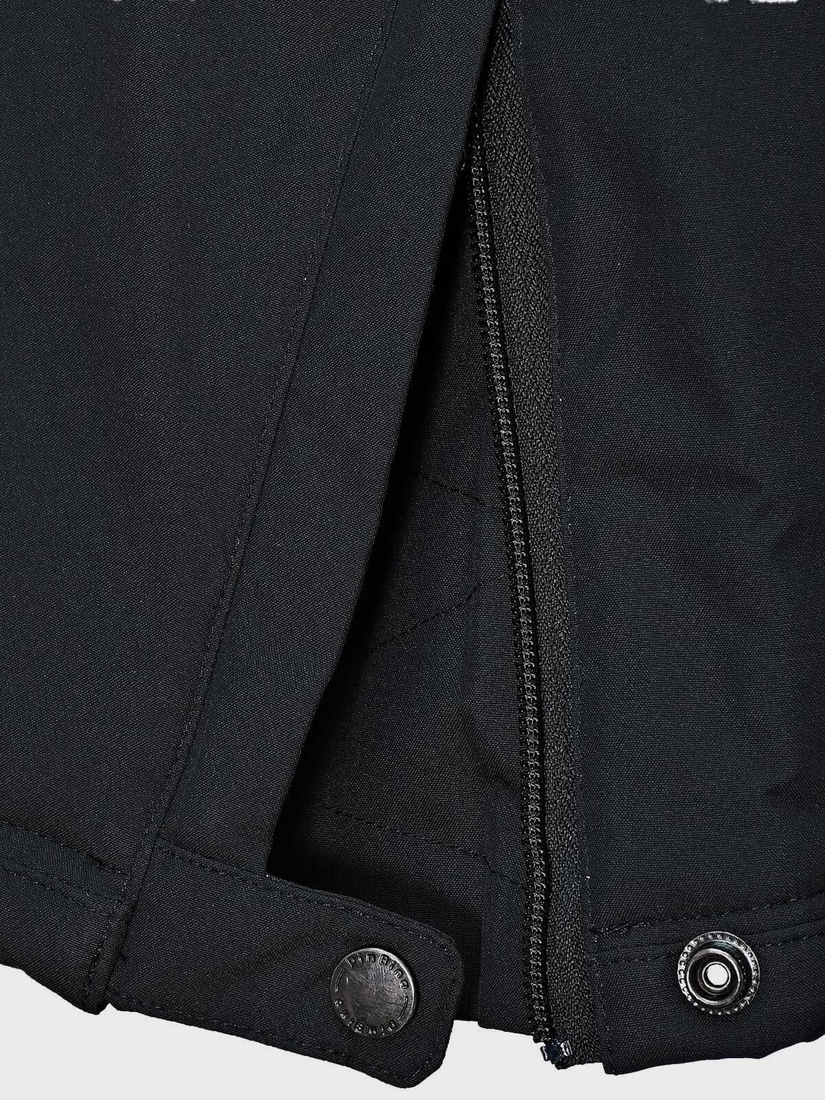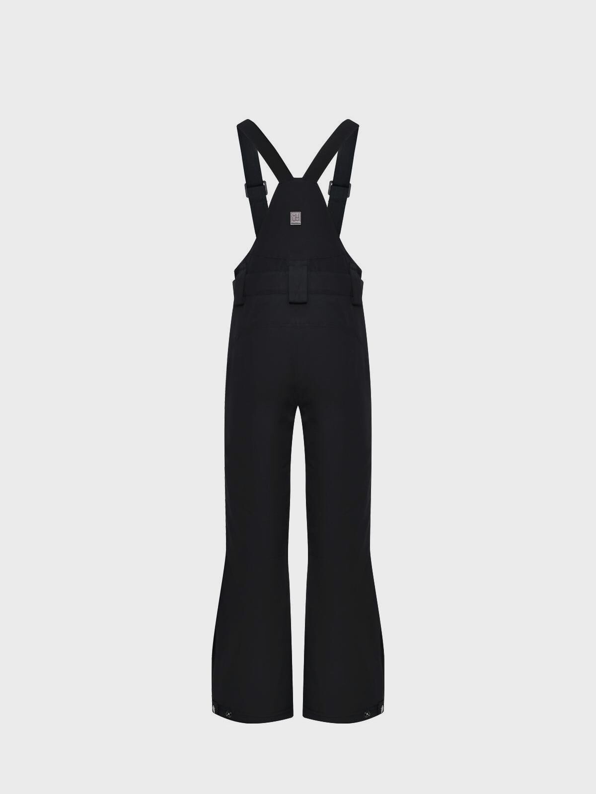 Черный полукомбинезон выполнен из прочного полиэстера с утеплителем. Модель комфортно садится по фигуре, благодаря эластичной вставке на поясе и регулируемым под рост бретелям. Два прорезных кармана застегиваются на молнии.