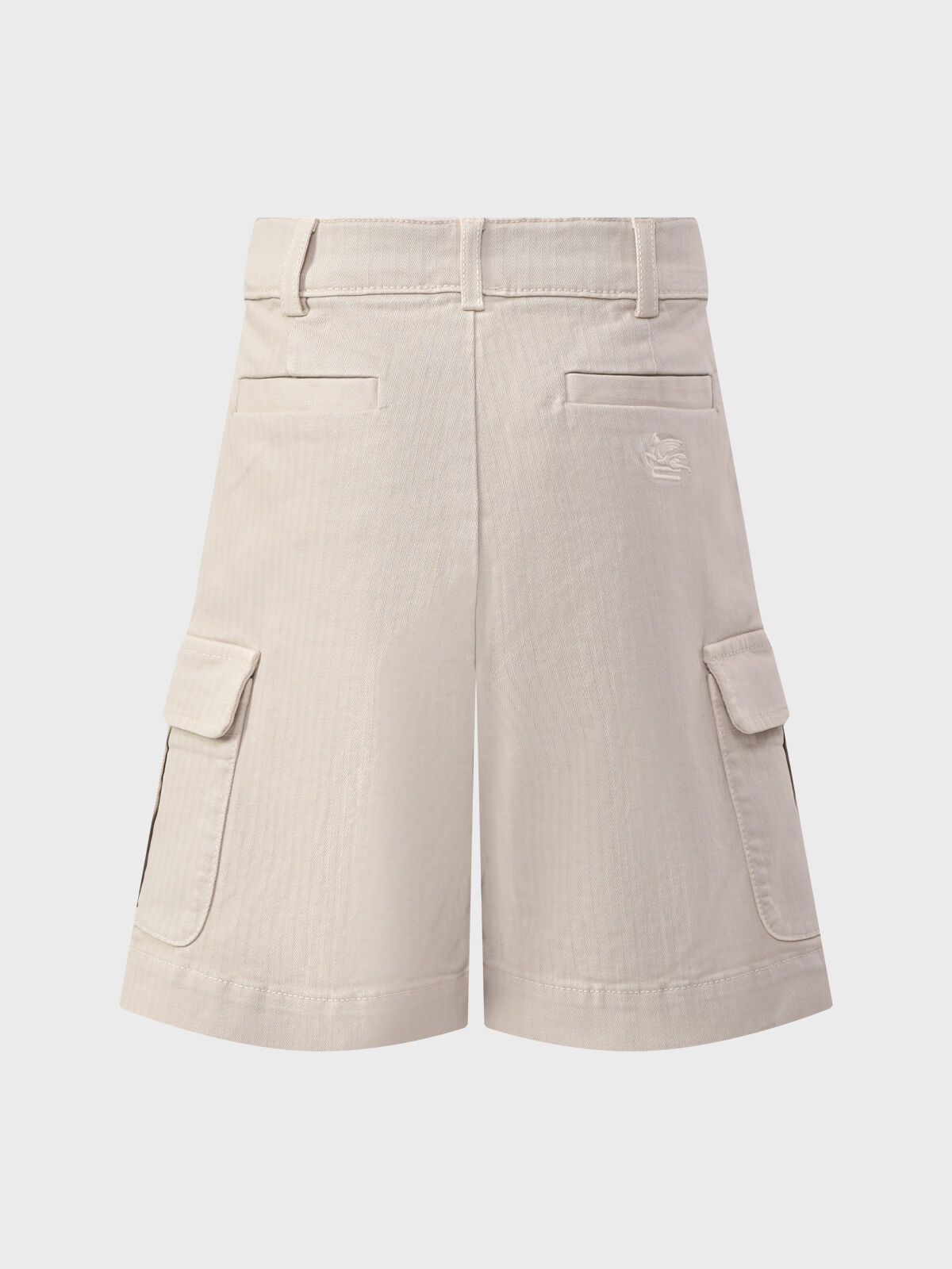 Бермуды Etro для мальчиков. Выполненные в универсальном сером цвете, они легко комбинируются с различными предметами гардероба. Особенностью этих бермудов являются карманы карго, которые не только добавляют функциональности, но и придают образу современный и спортивный вид. Состав из 97% хлопка и 3% эластана обеспечивает отличную мягкость и комфорт, а также позволяет свободно двигаться. Удобная посадка и продуманный крой делают бермуды комфортными в использовании.