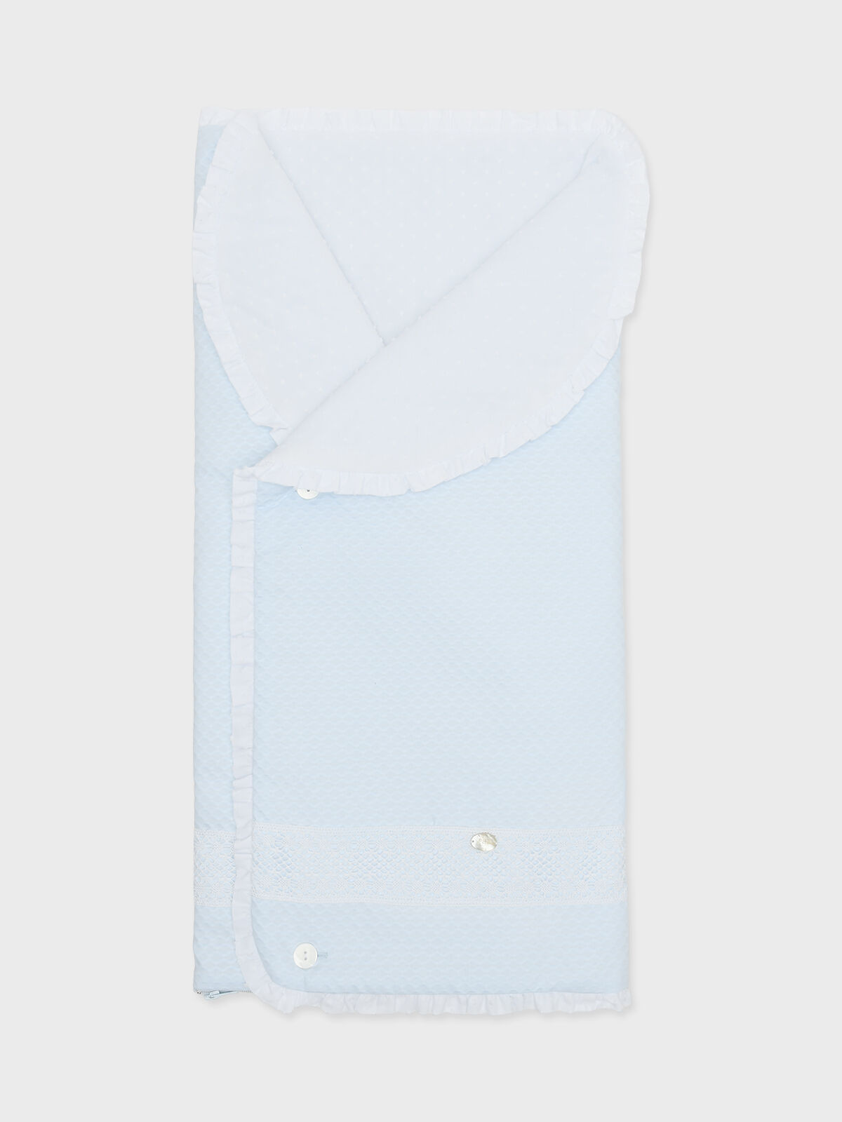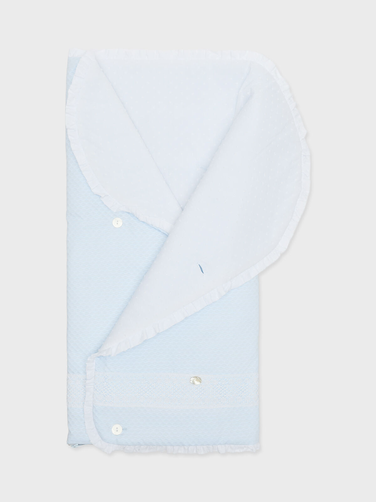 Конверт из фактурной ткани с кружевной лентой, голубой