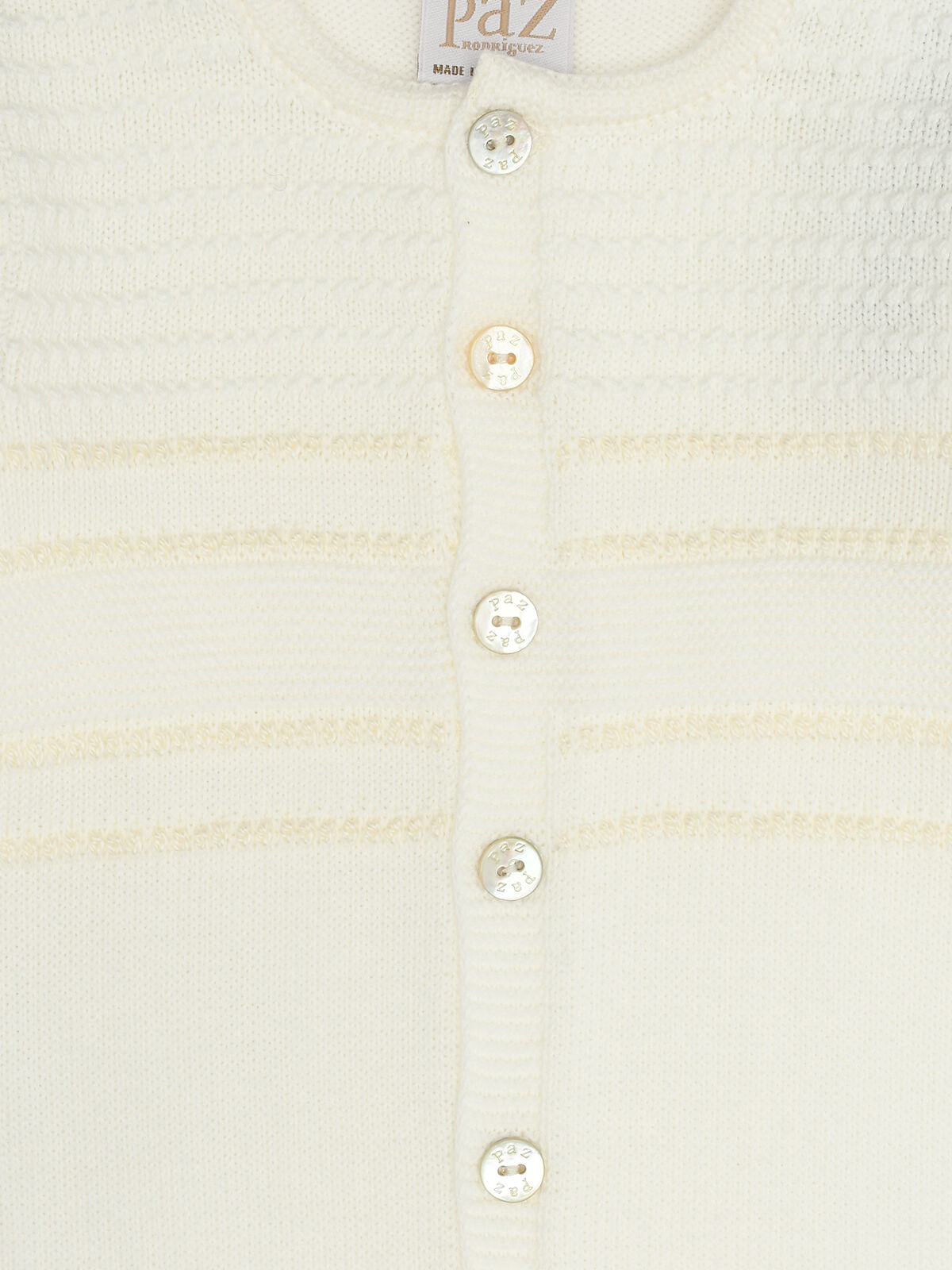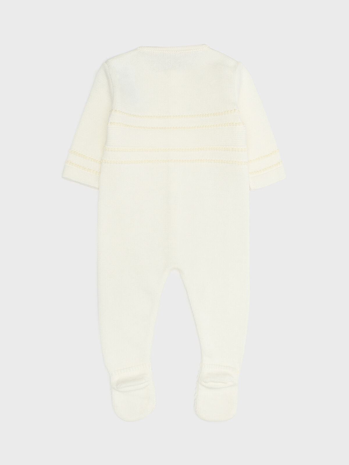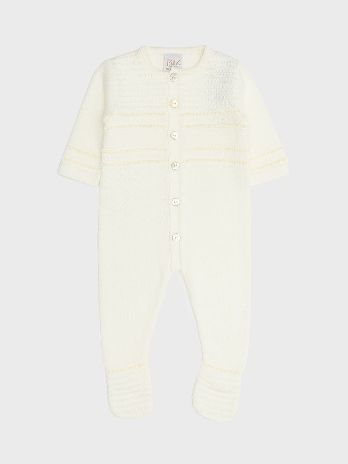 Как нежный утренний туман — этот вязаный кремовый комбинезон дарит ощущение спокойствия и уюта. Он связан из 100% хлопка, который дышит и мягко касается кожи малыша, не вызывая раздражение. Идеален для уютных вечеров в кроватке или первых объятий на руках мамы. Такая вещь — как сказка, которую рассказываешь перед сном.