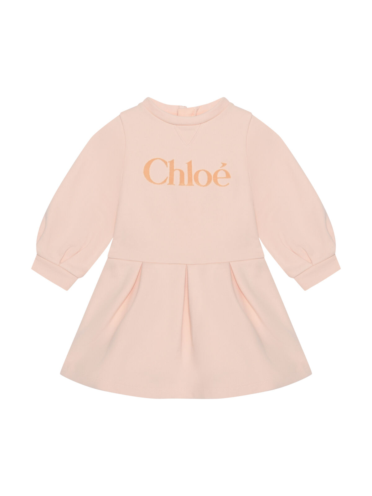Платье Chloe розового цвета выполнено из мягкого хлопка. Натуральный материал отлично дышит и приятен к телу. Модель застегивается на потайную молнию сзади. Передняя полочка декорирована крупным логотипом бренда.