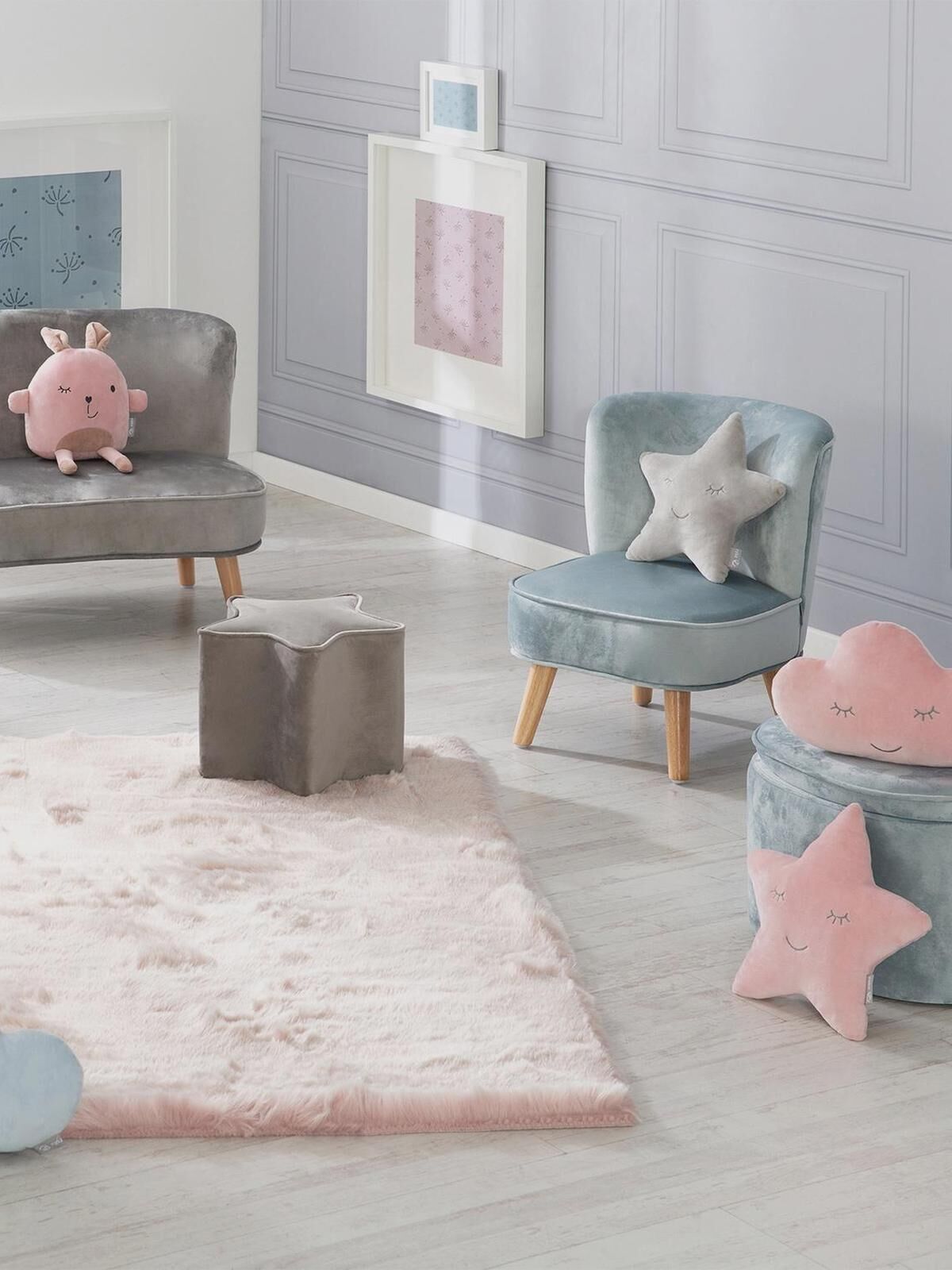 Детский велюровый овальный пуфик Lil Sofa, голубой