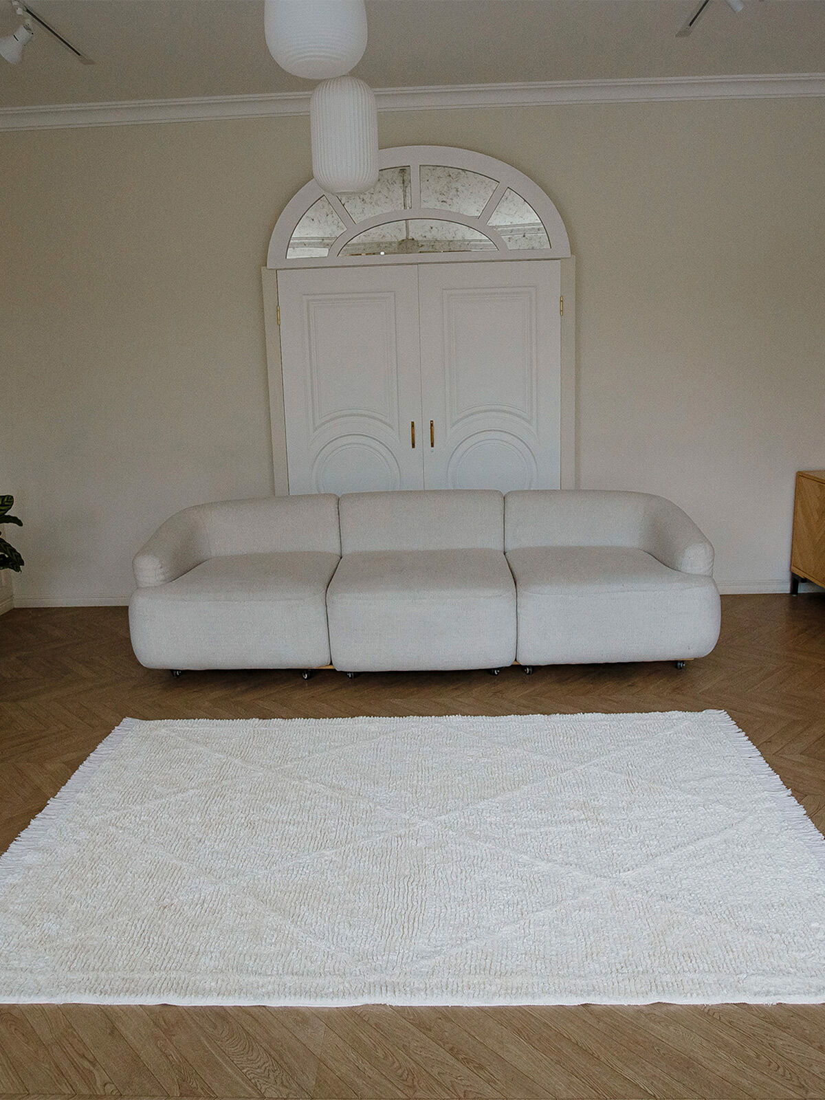 Окунитесь в атмосферу уюта и тепла с хлопковым ковром ADINKRA от Lillaland. Этот ковер, выполненный из натурального хлопка, не только приятен на ощупь, но и добавляет изысканности любому интерьеру. Мягкая текстура и нежный оттенок создают ощущение комфорта и расслабления. Деликатный геометрический узор придает ковру стильный и современный вид, а бахрома по краям добавляет шарма и аутентичности. Ковер ADINKRA идеально подойдет для гостиной, спальни или детской комнаты, создавая теплую и гостеприимную атмосферу. Этот ковер станет прекрасным дополнением к вашему дому, привнося в него нотку уюта и элегантности. Наслаждайтесь комфортом и стилем с ковром ADINKRA от Lillaland.