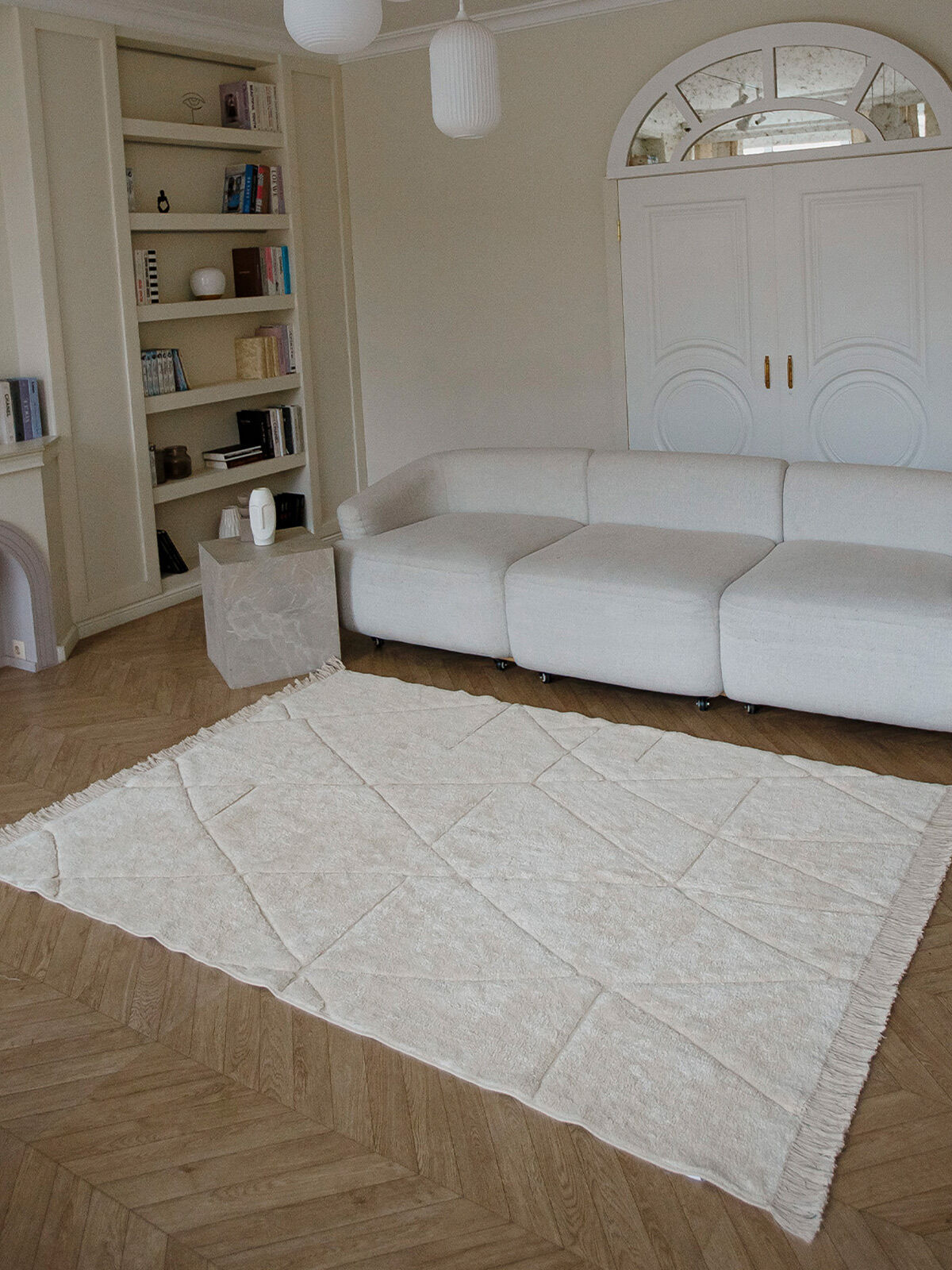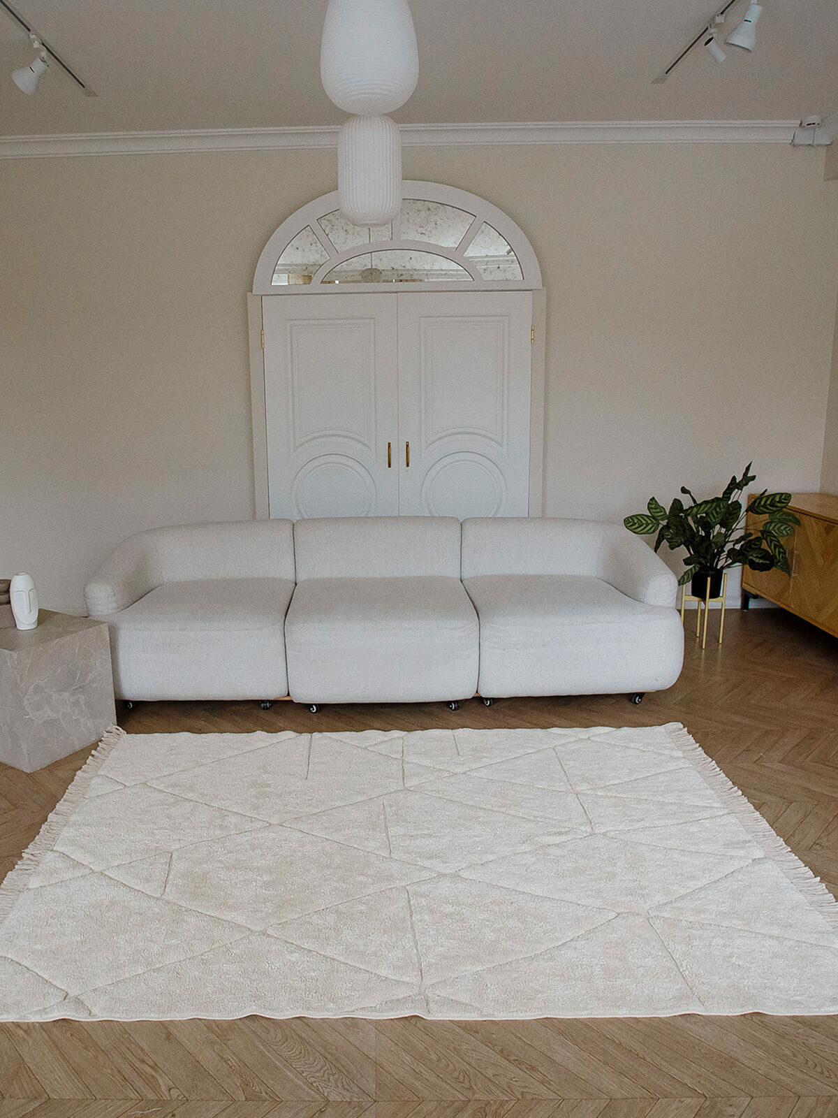 Добавьте глубину и текстуру в свой интерьер с хлопковым ковром KIVIA от Lillaland. Его рельефный геометрический узор, выполненный в мягких нейтральных тонах, создает интересный визуальный эффект, при этом не перегружая пространство. Мягкий и приятный на ощупь, ковер KIVIA станет прекрасным дополнением гостиной, спальни или кабинета, добавляя нотку изысканности и комфорта.