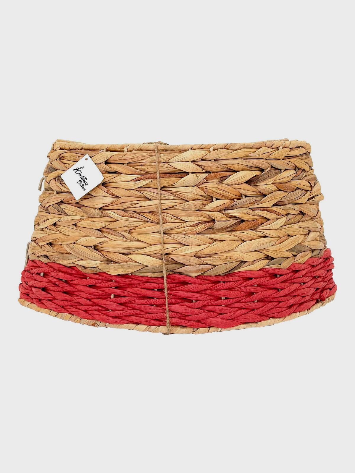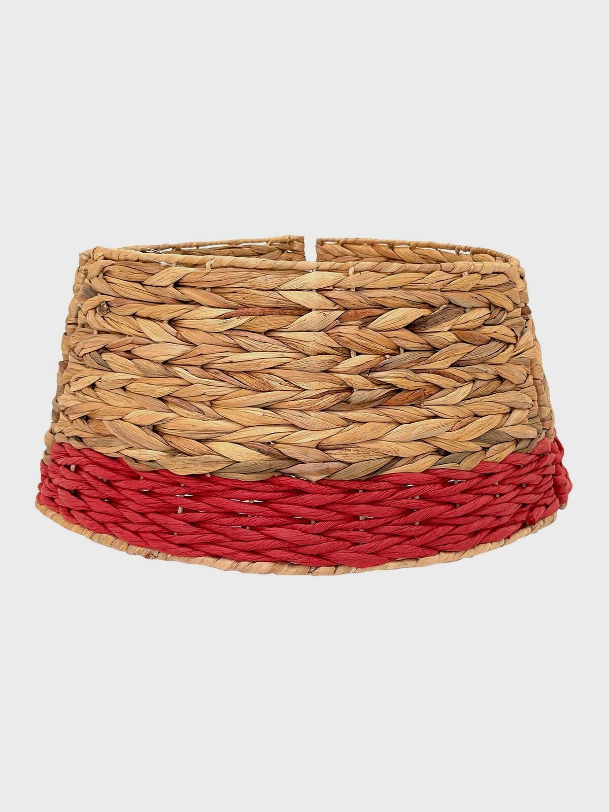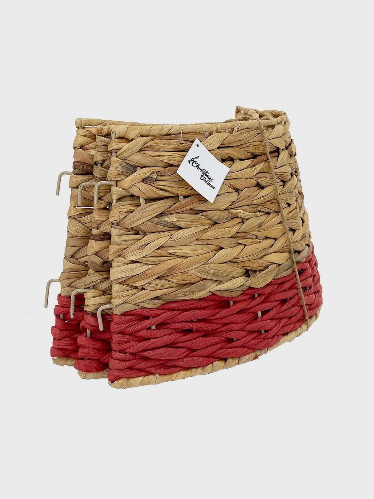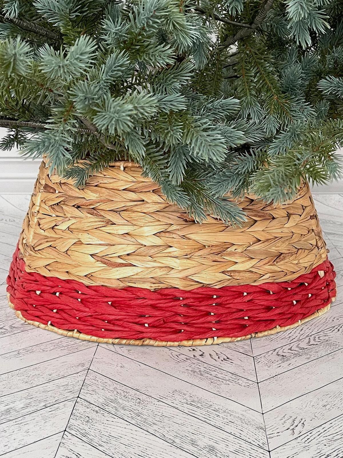 Корзина для елки разборная джутовая с красной полосой, коричневая, 26x58 см
