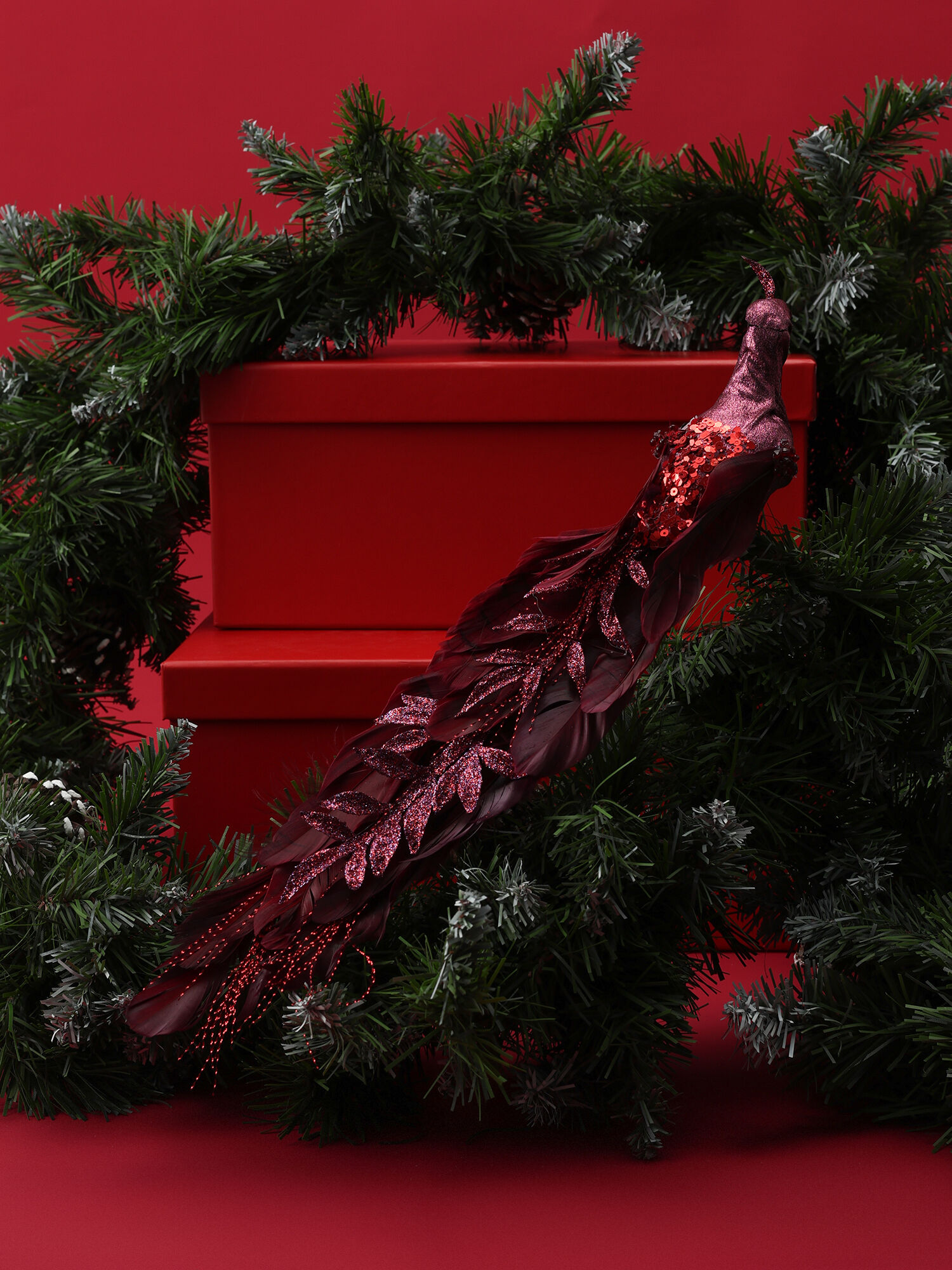 Декоративный красный Павлин с длинным хвостом, 36 см