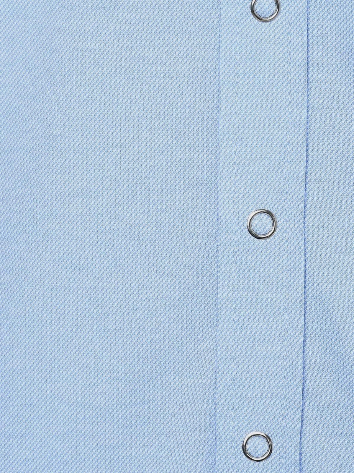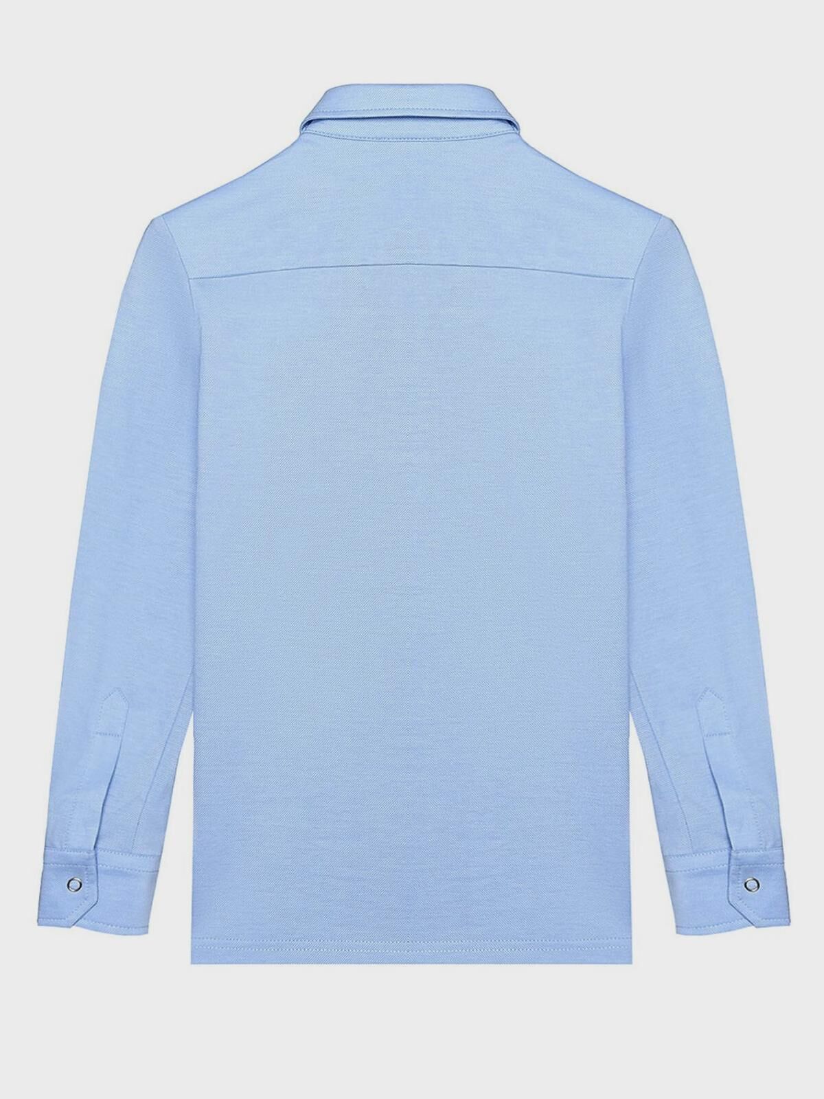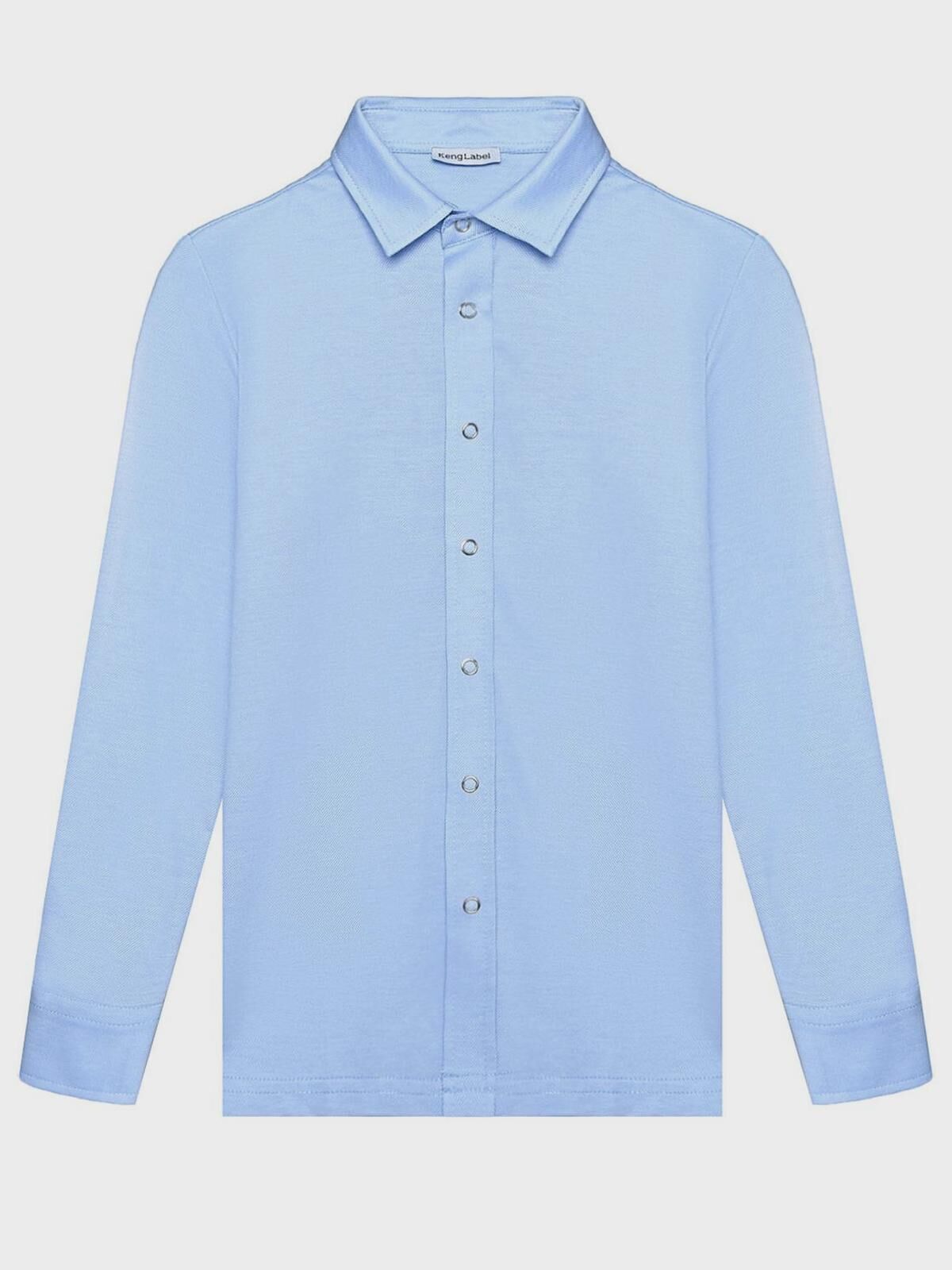 Голубая рубашка выполнена из мягкого хлопка. Этот натуральный материал отлично дышит и практически не мнется. Модель прямого кроя с широкими манжетами застегивается на кнопки.