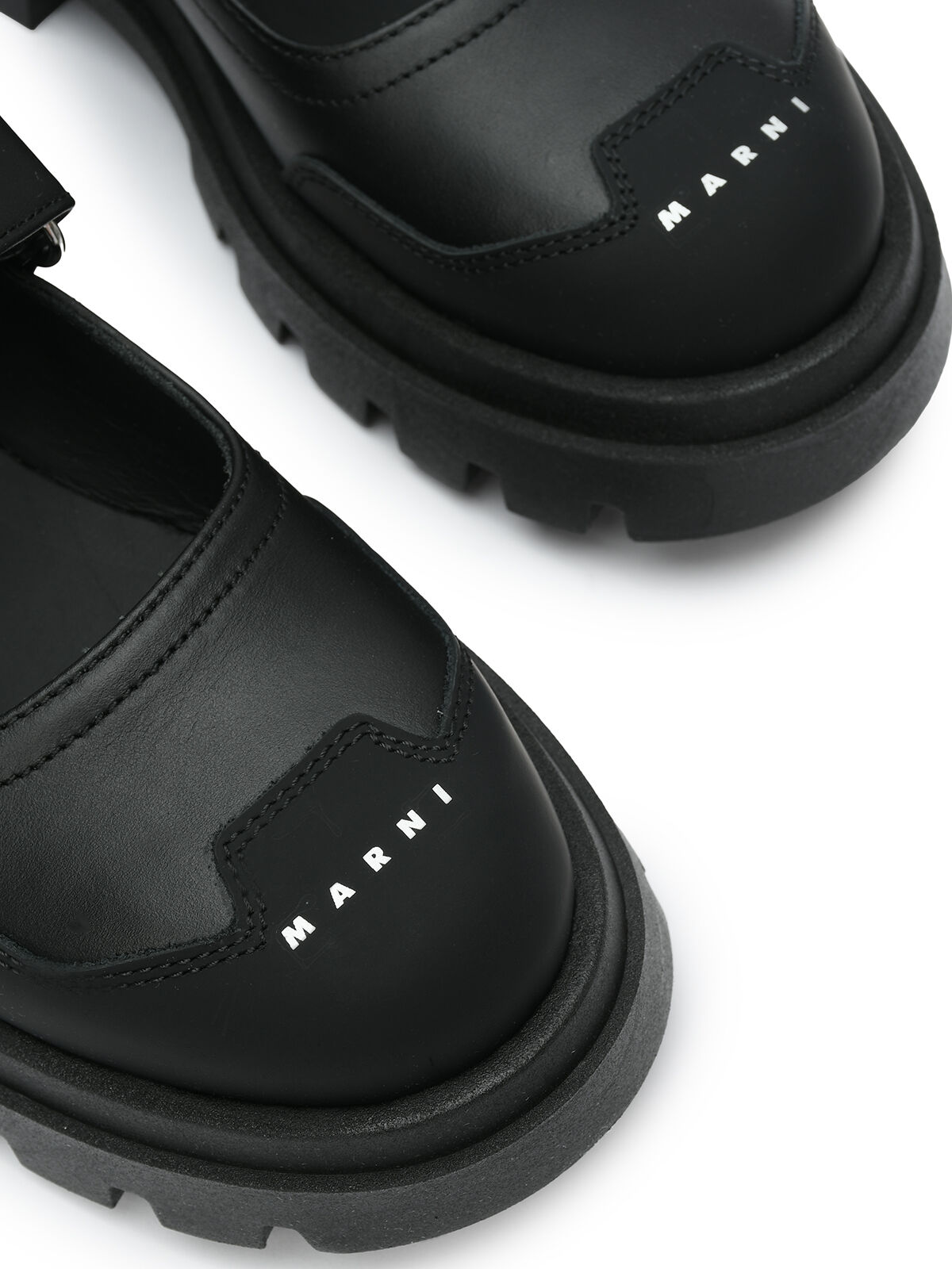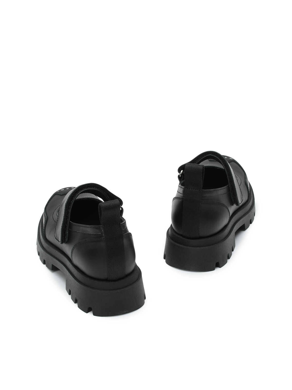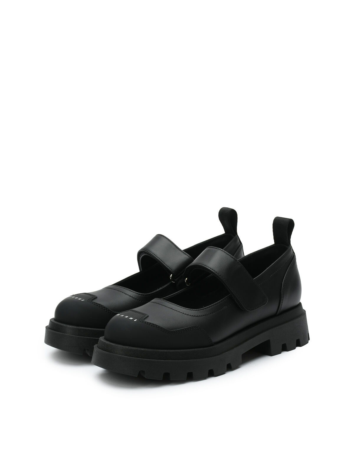 Туфли MARNI для девочек выполнены в лаконичном чёрном цвете. Модель изготовлена из высококачественной гладкой кожи 93% с добавлением полиэстера 7%, что обеспечивает мягкость и комфорт при ежедневном использовании. На носу аккуратно размещён фирменный логотип бренда, придающий изделию узнаваемость. Удобная застёжка на липучке фиксирует стопу и облегчает процесс обувания. Внутренняя подкладка и стелька полностью выполнены из натуральной кожи, позволяя ноге дышать. Прочная подошва из термопластичной резины гарантирует устойчивость и надёжное сцепление с различными поверхностями.