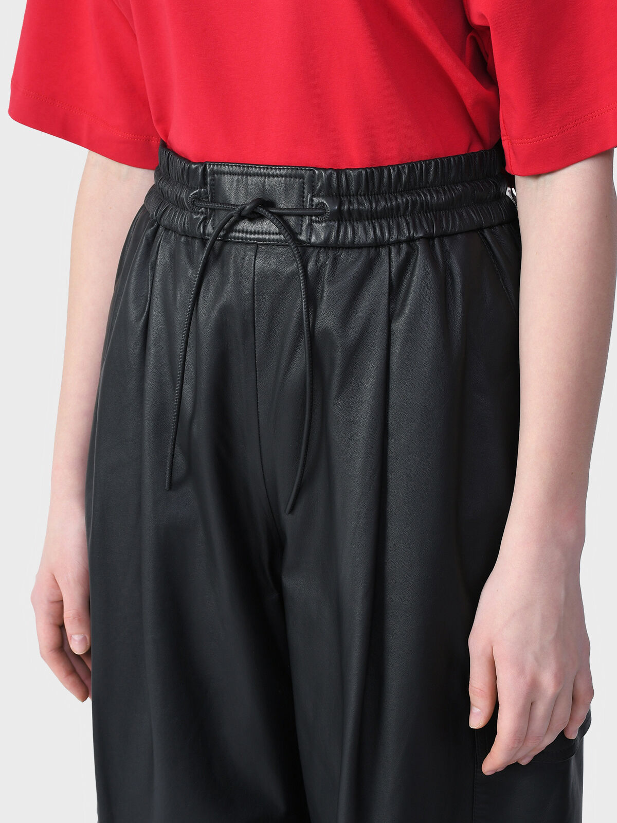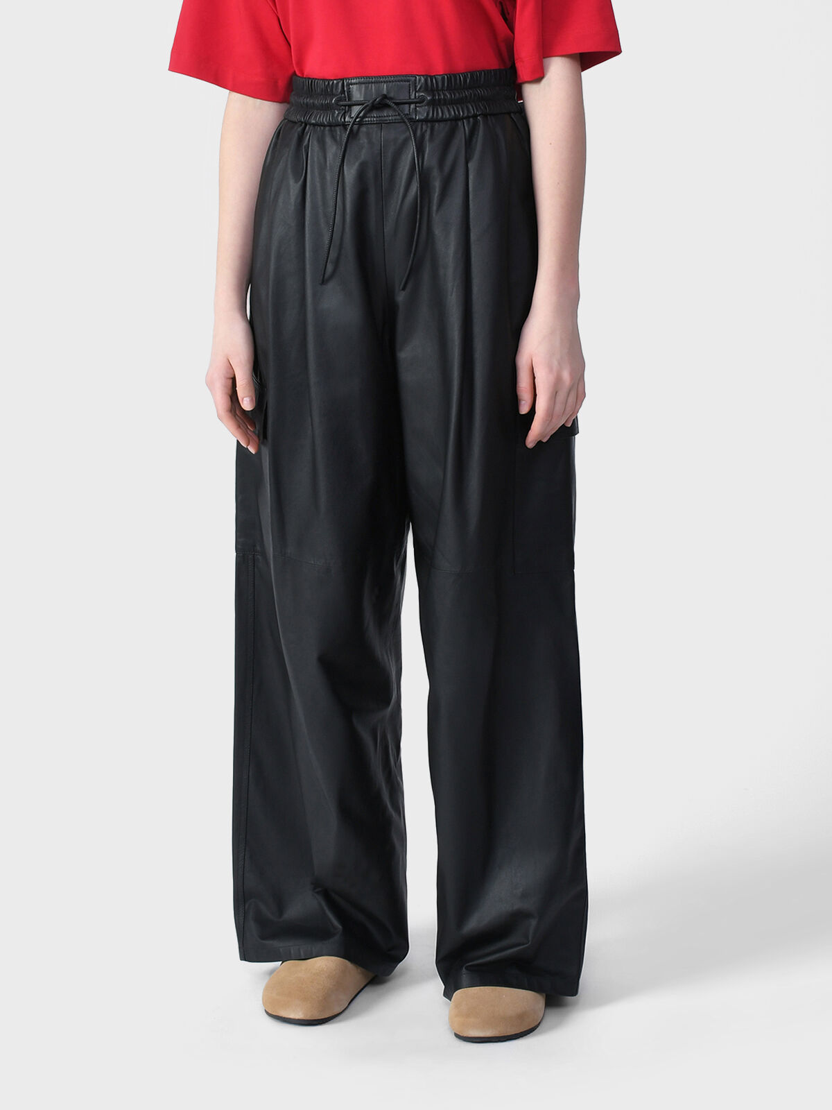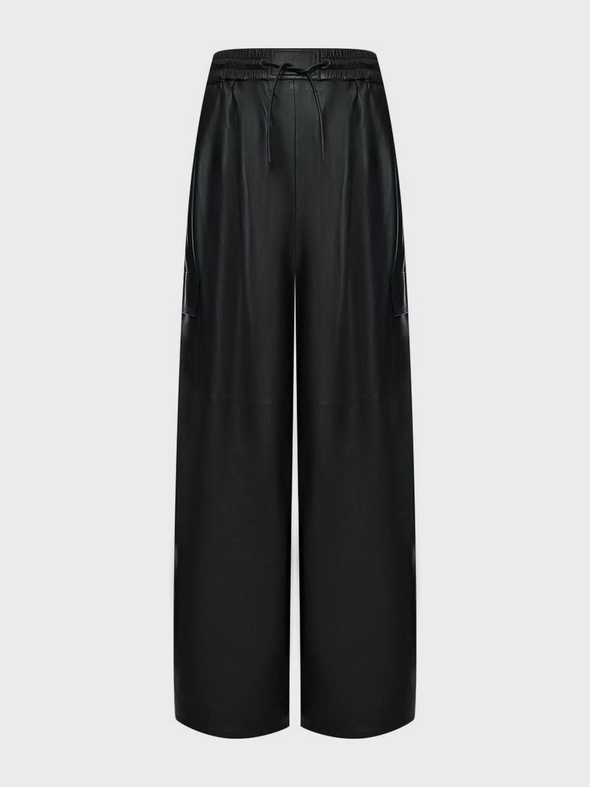 Брюки широкие из кожи, черные