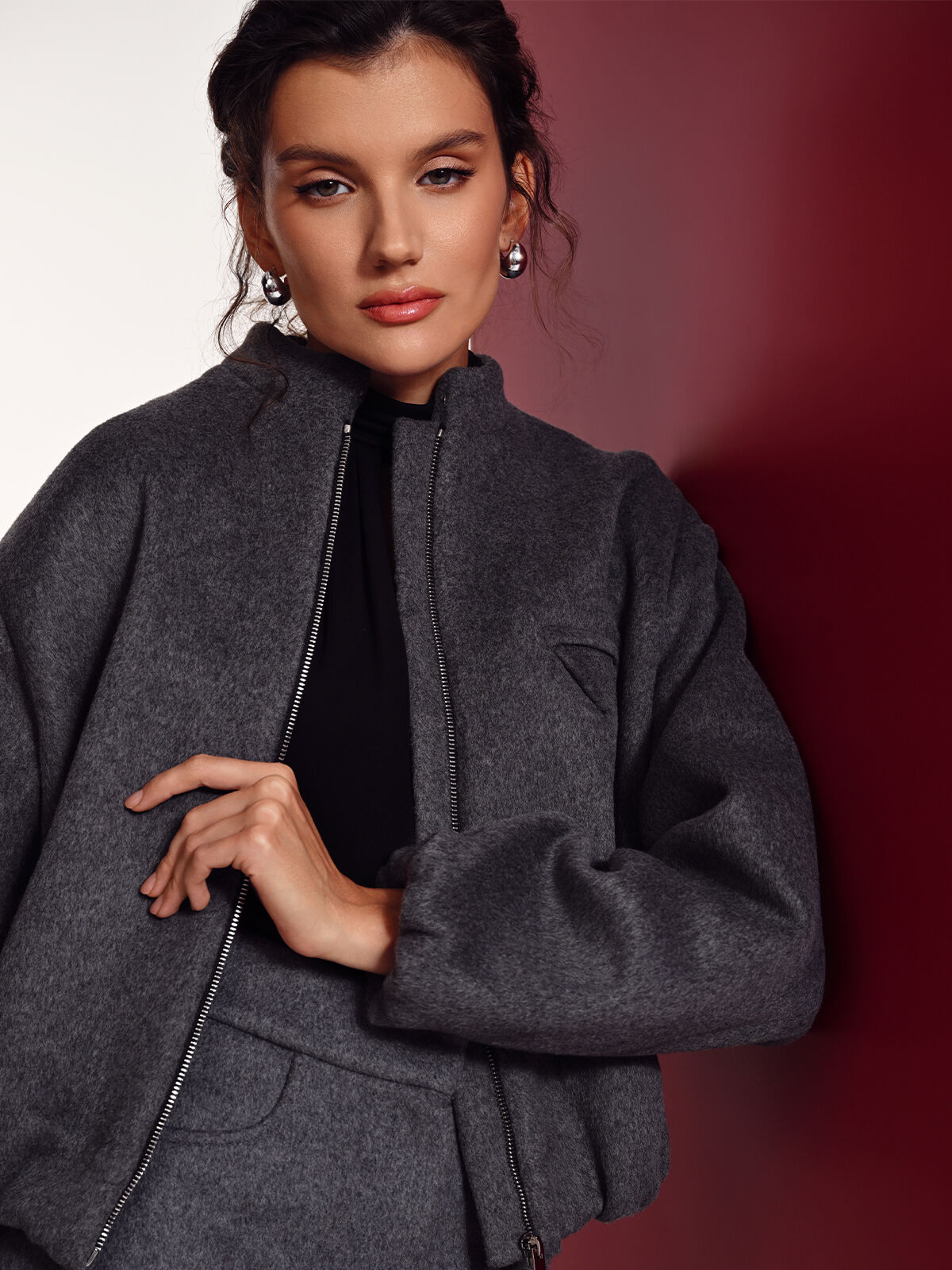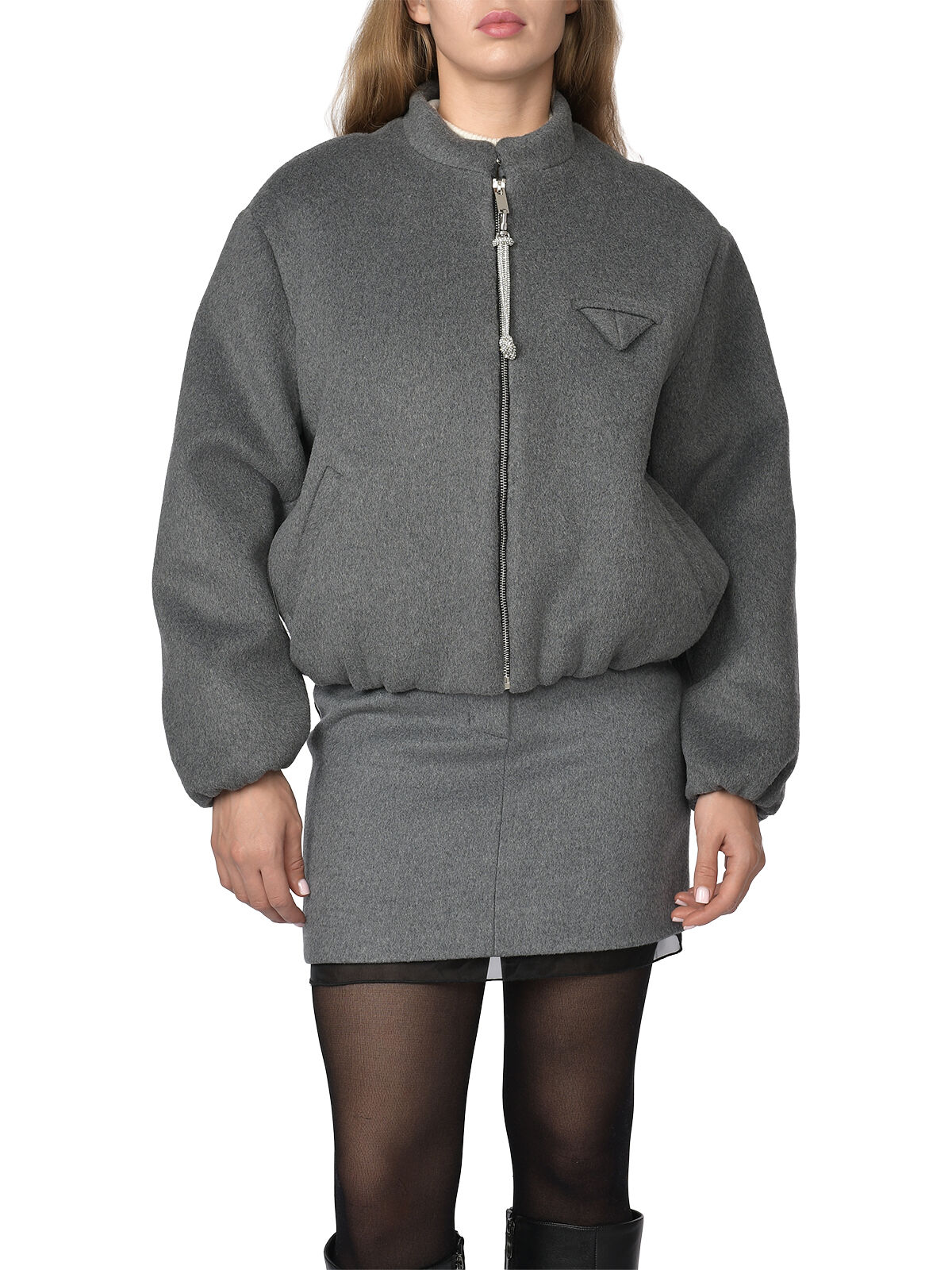 Бомбер с накладным карманом, серый