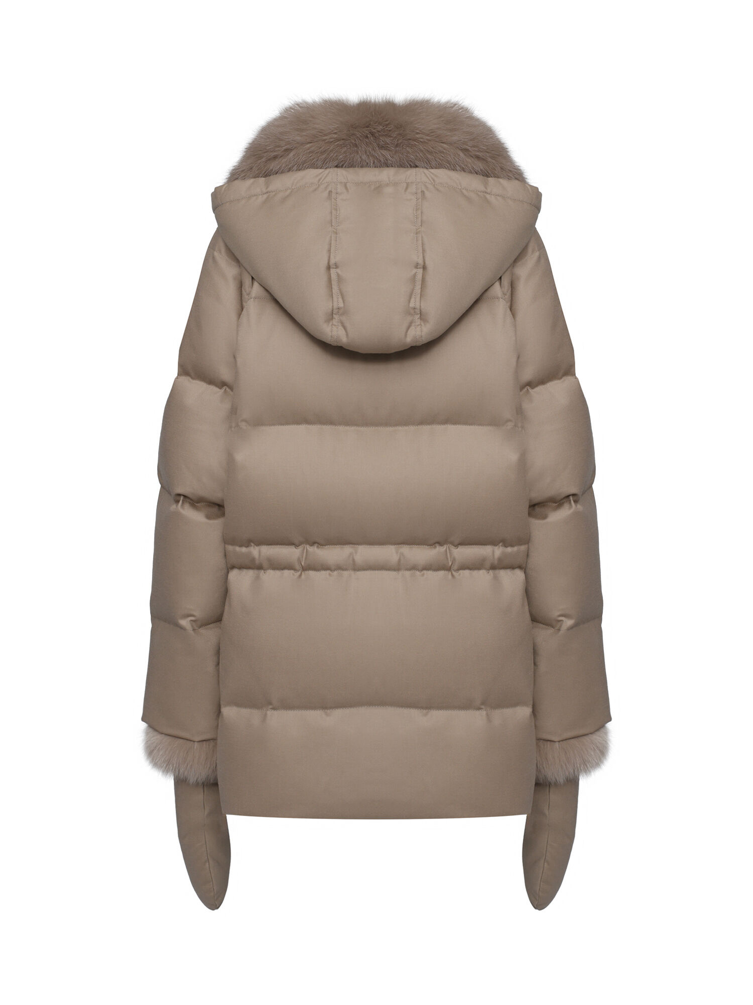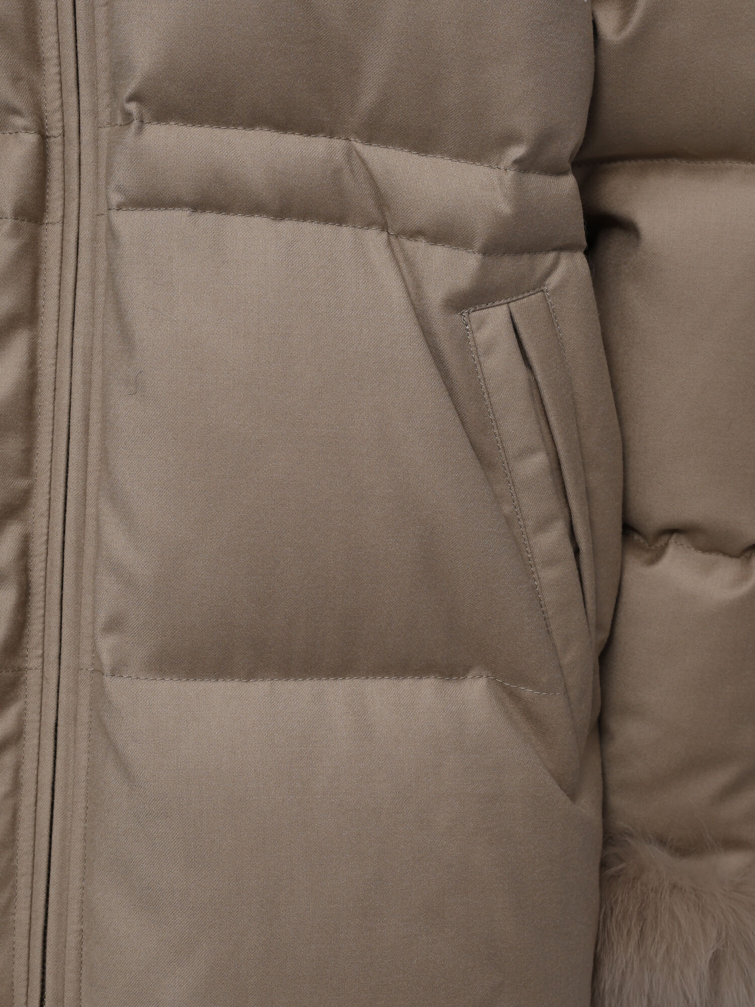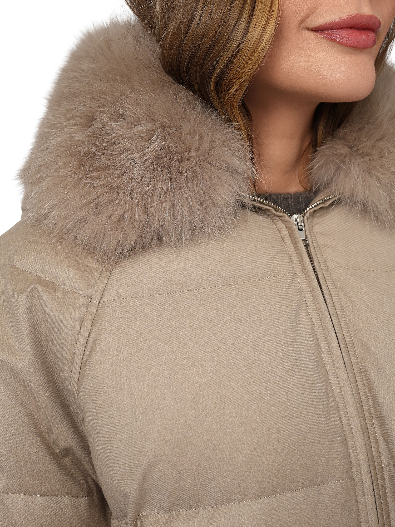 Куртка с воротником из лисы, светло-бежевая