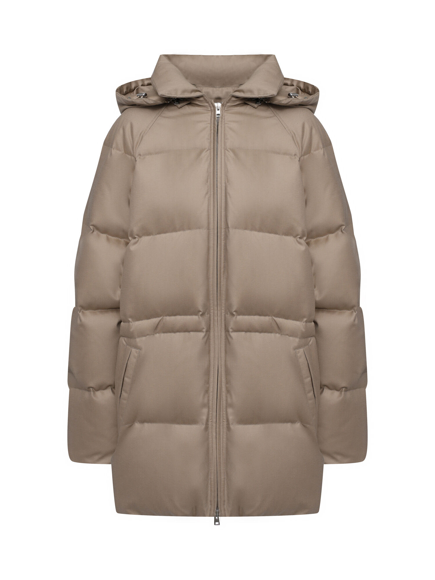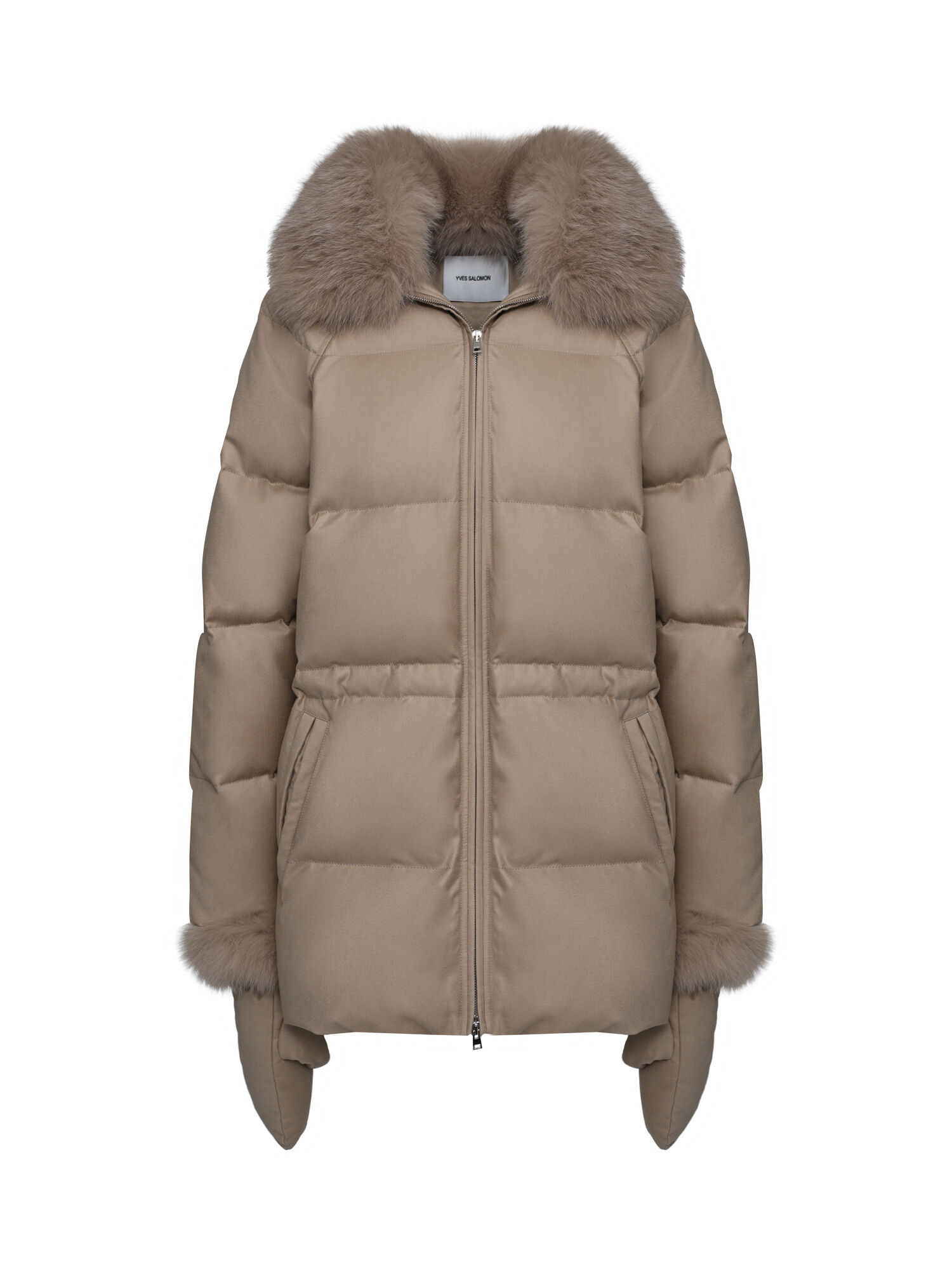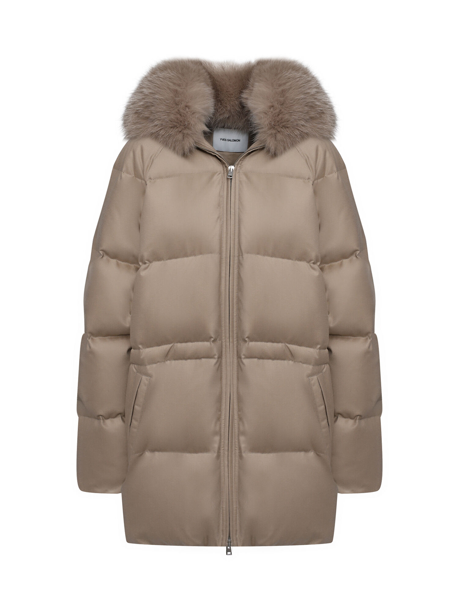 Куртка с воротником из лисы, светло-бежевая