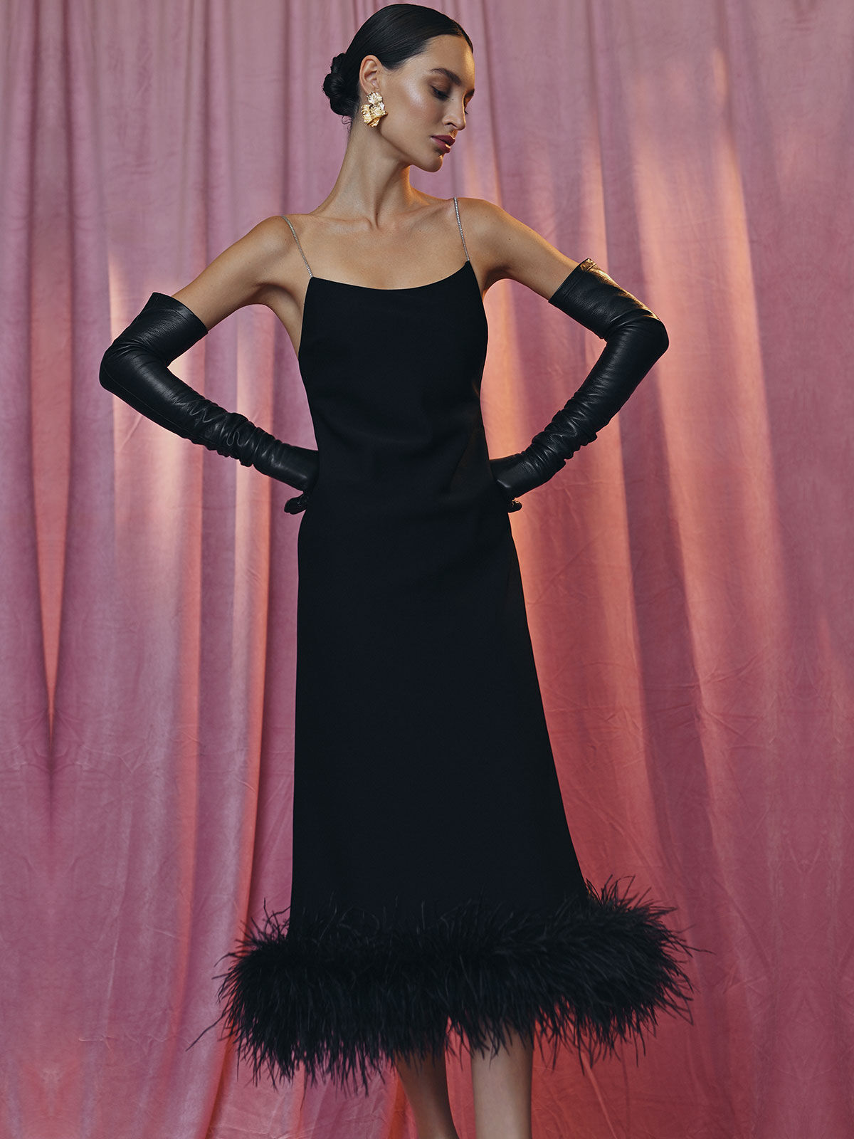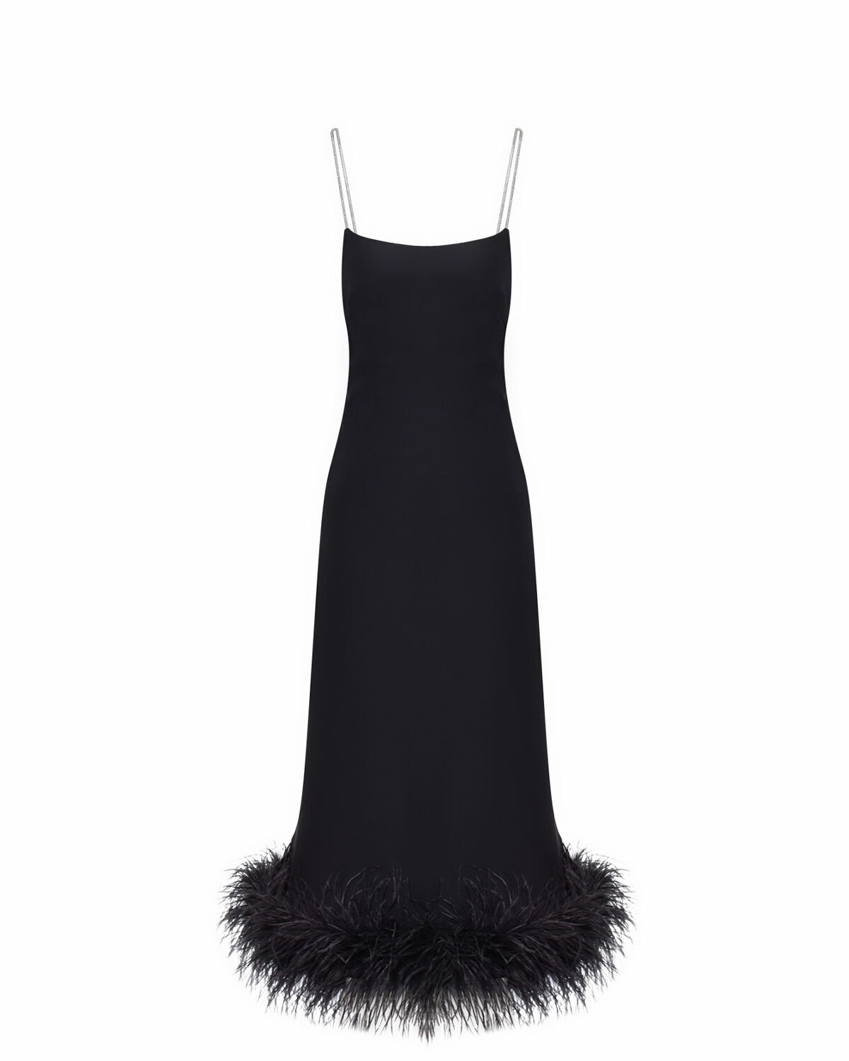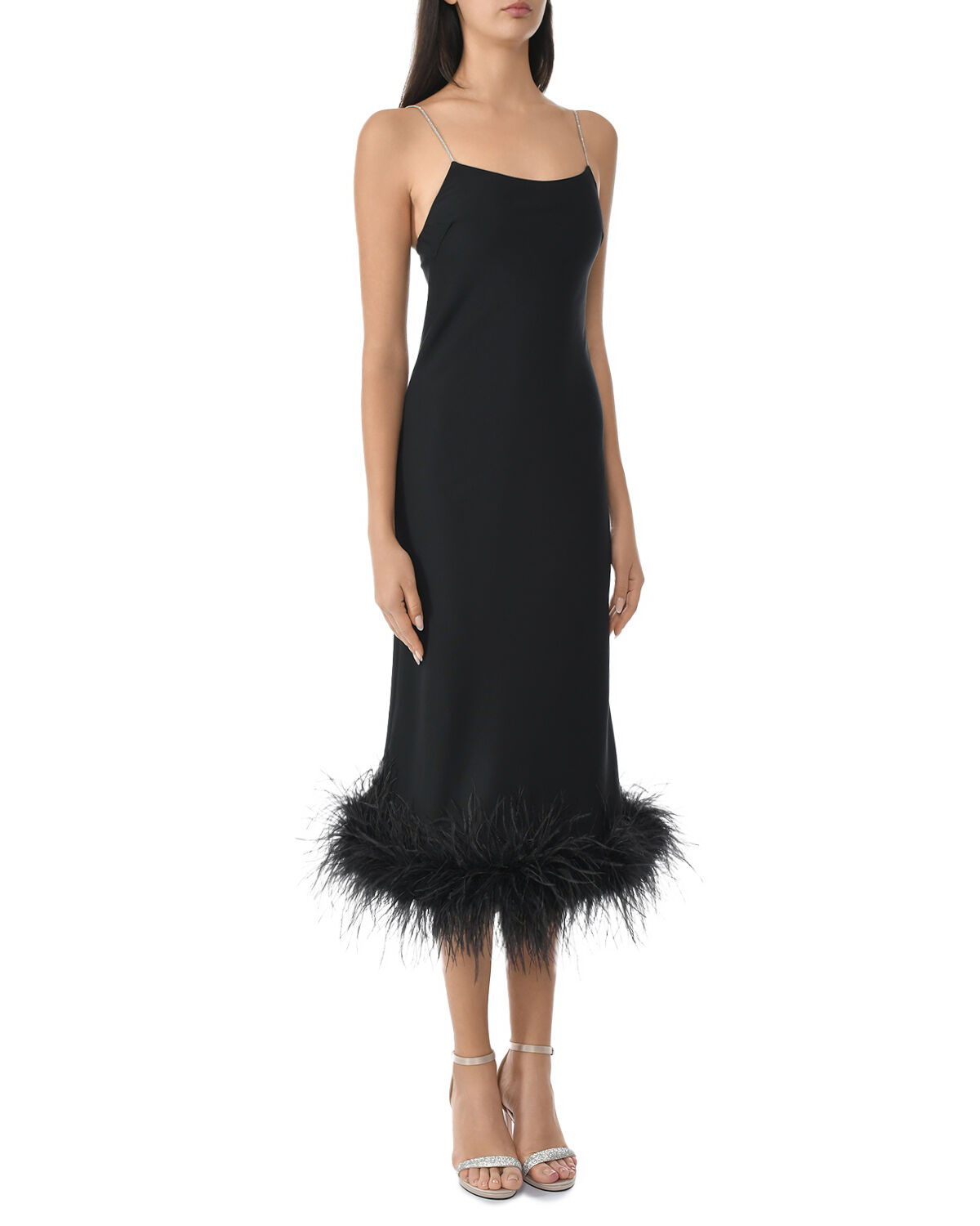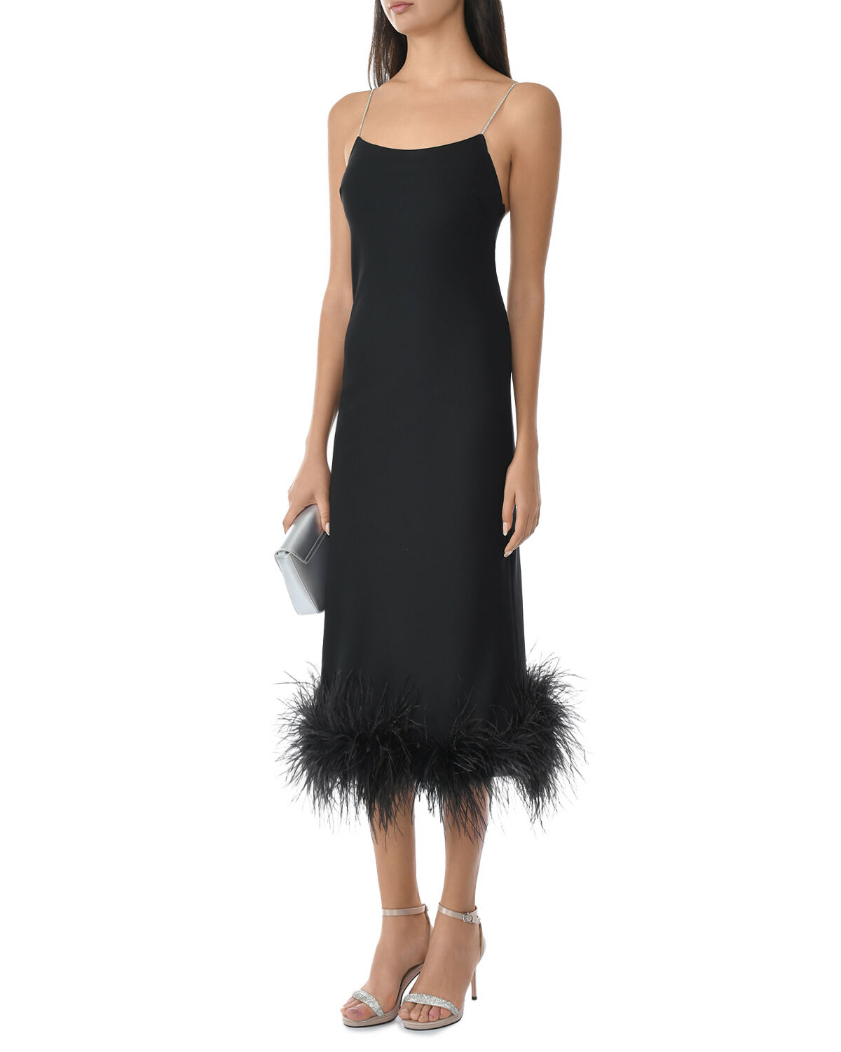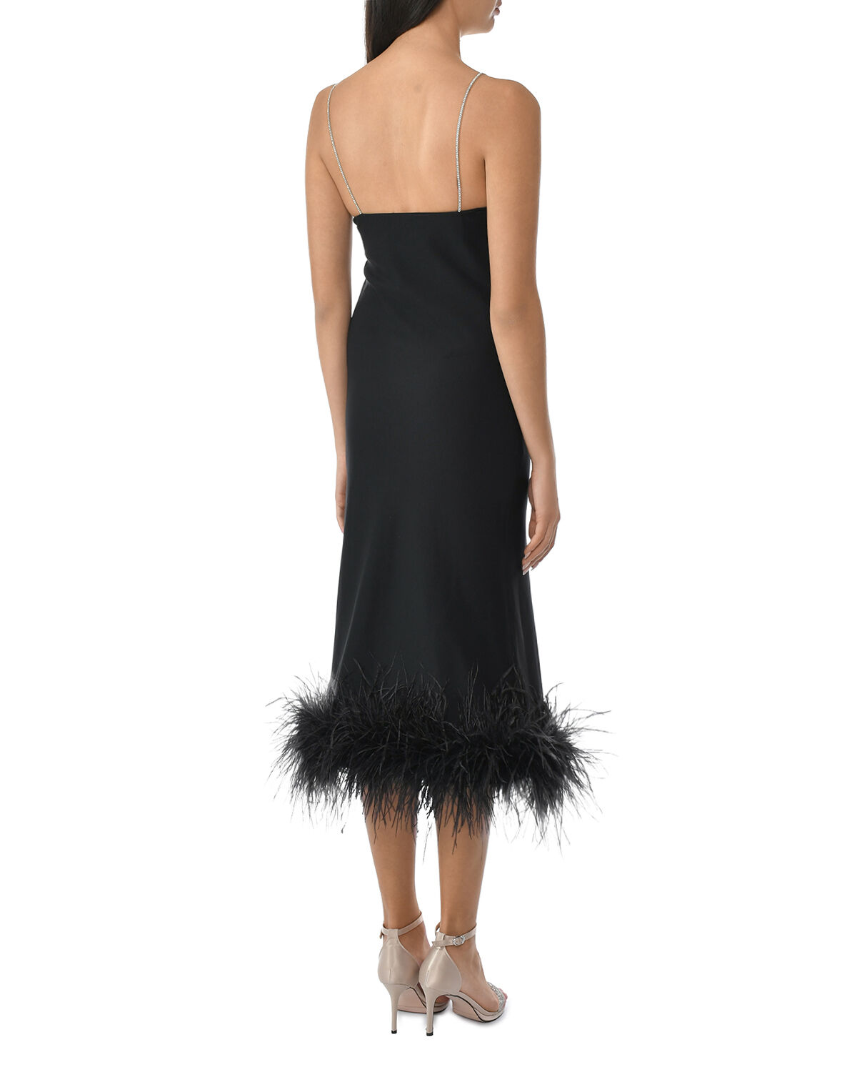 Платье-комбинация с декором из перьев