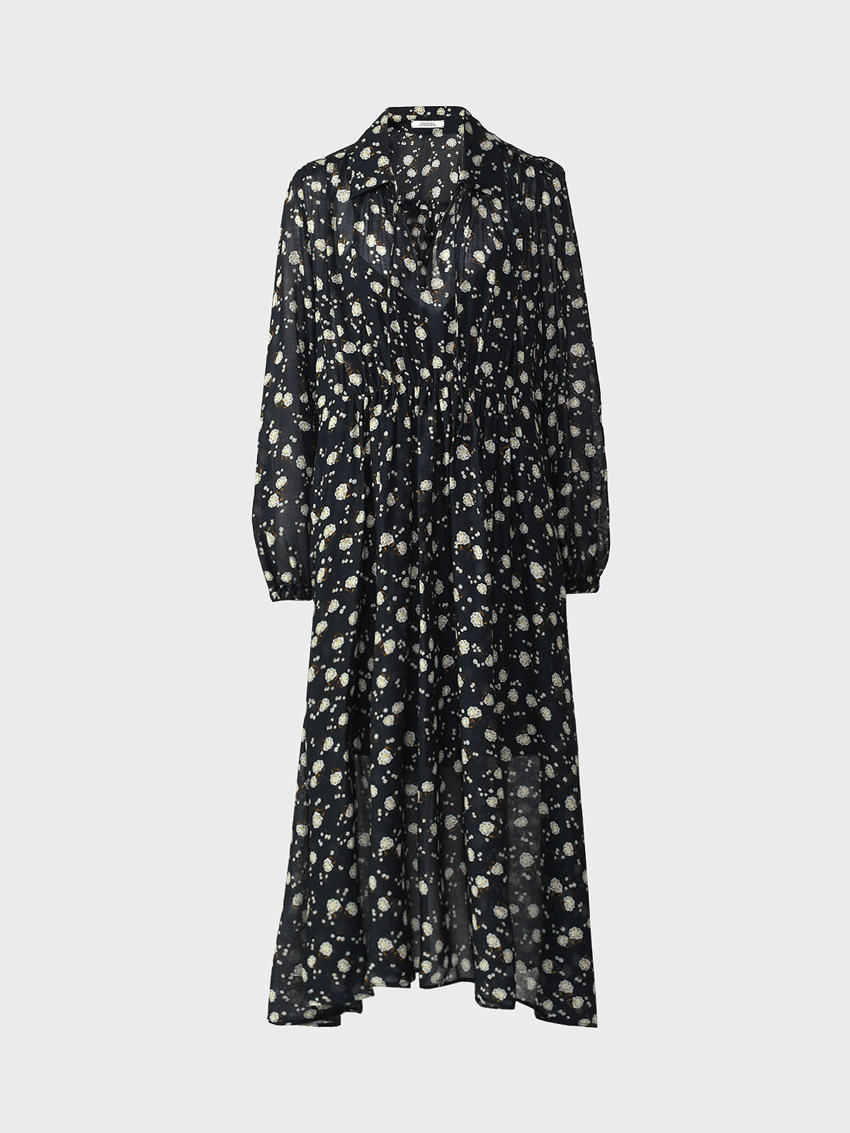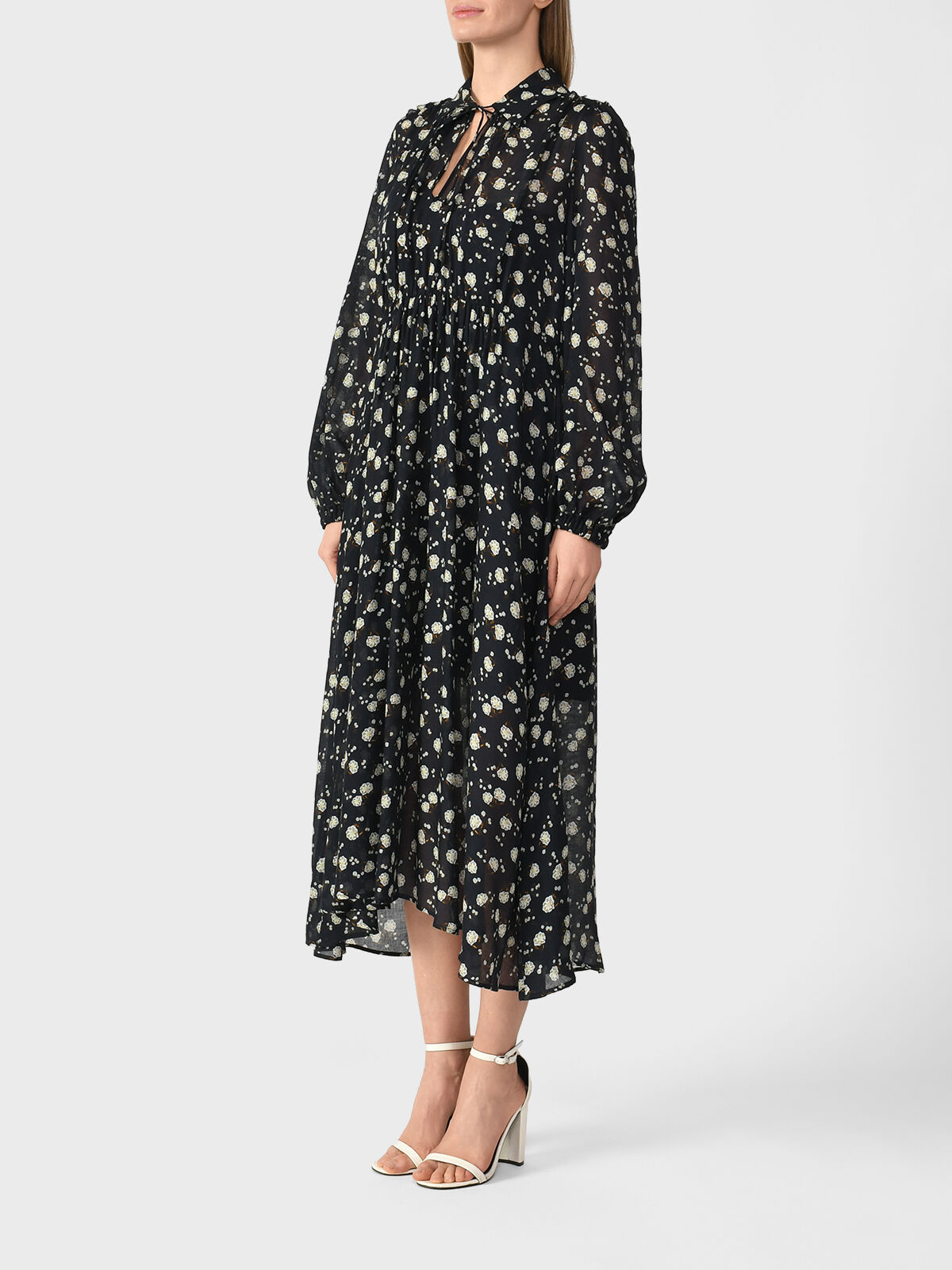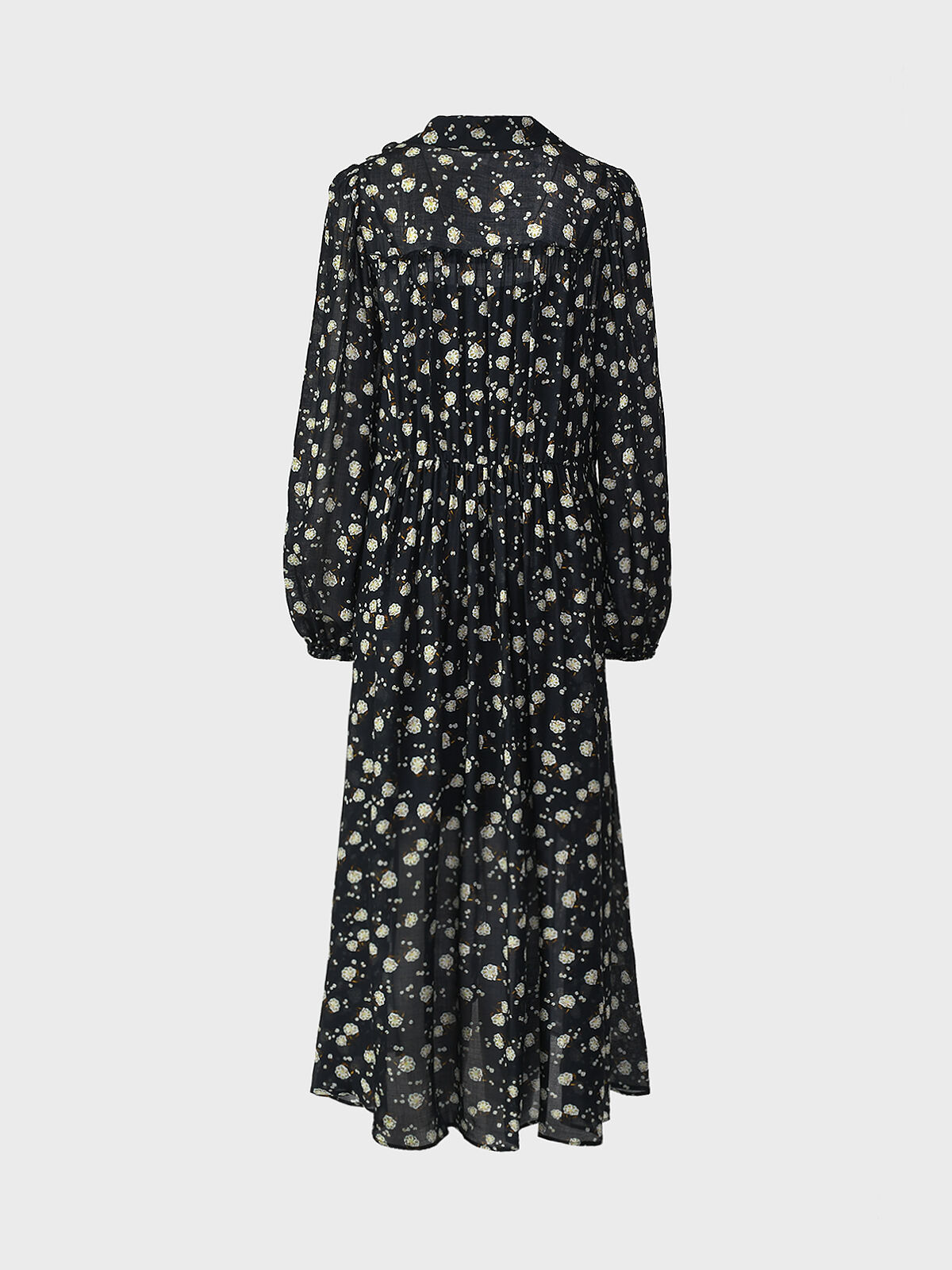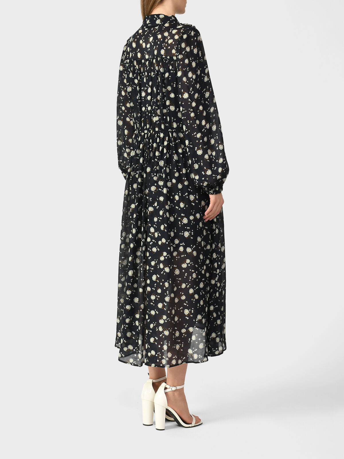 Темно-синее платье с цветочным принтом — это идеальное сочетание элегантности и комфорта. Сшитое из вискозы с добавлением шерсти, оно сочетает в себе легкость и уют. Пуговицы придают ему винтажный шарм, а цветочный принт добавляет свежести и яркости. Это платье идеально подходит для стильных образов в духе ретро, бохо или романтического casual. Можно сочетать его с уютным кардиганом и ботильонами для создания расслабленного образа.