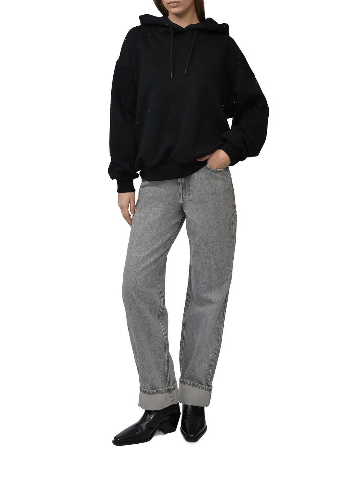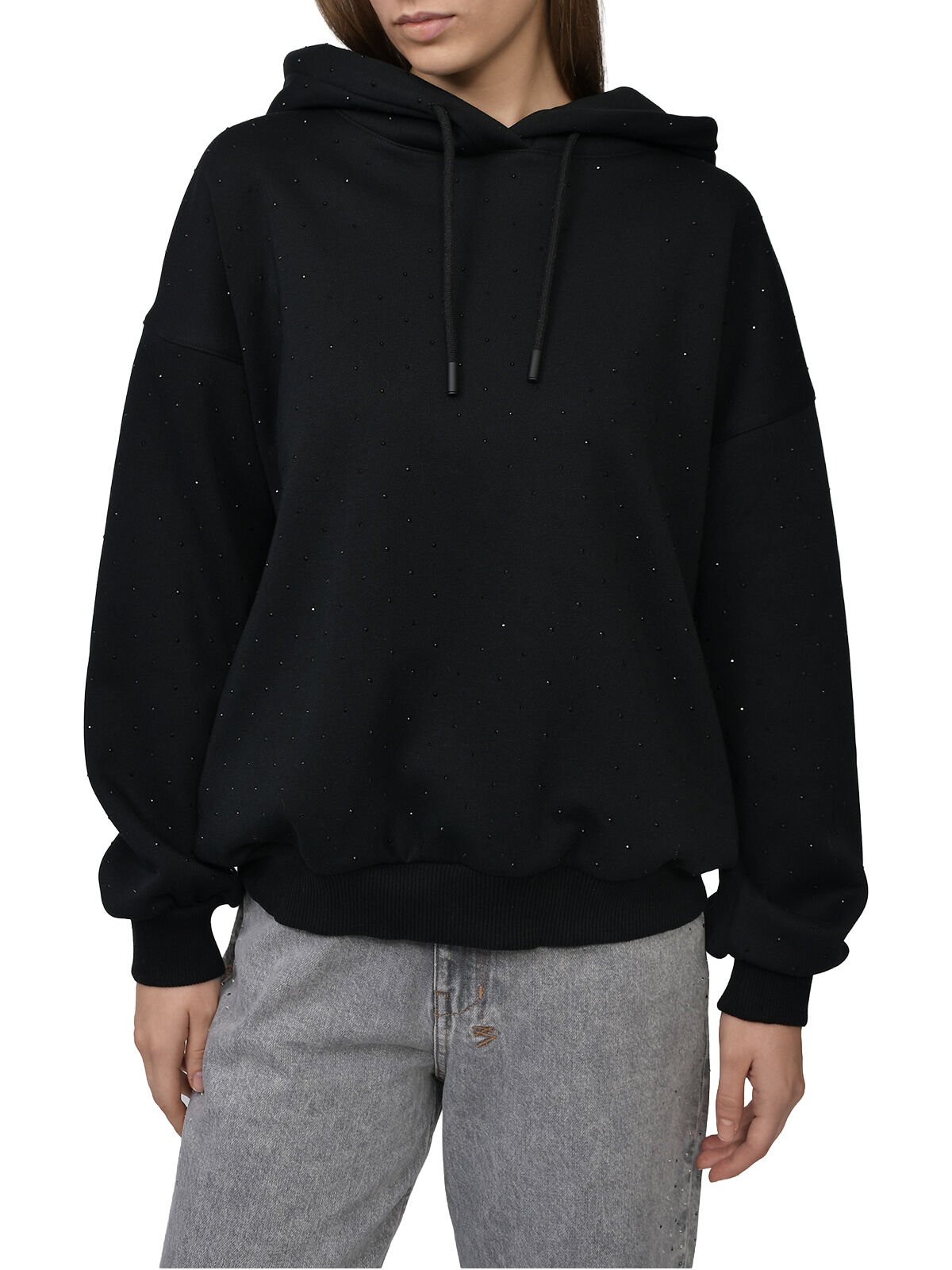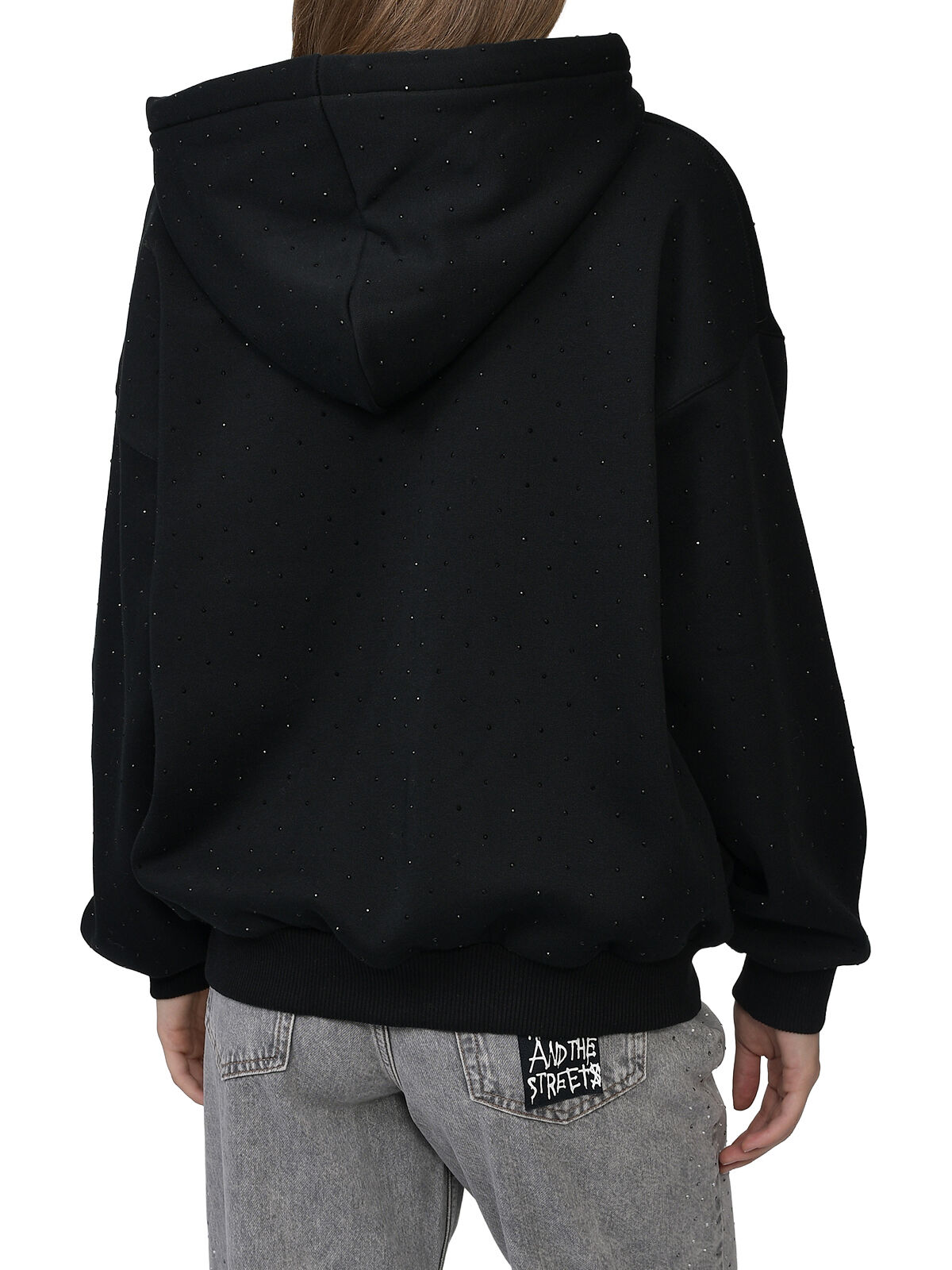 Толстовка-худи со стразами, черная