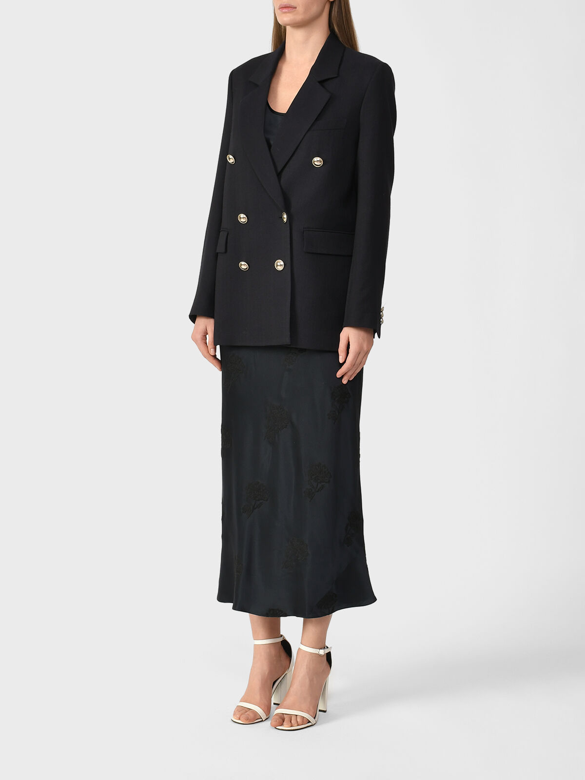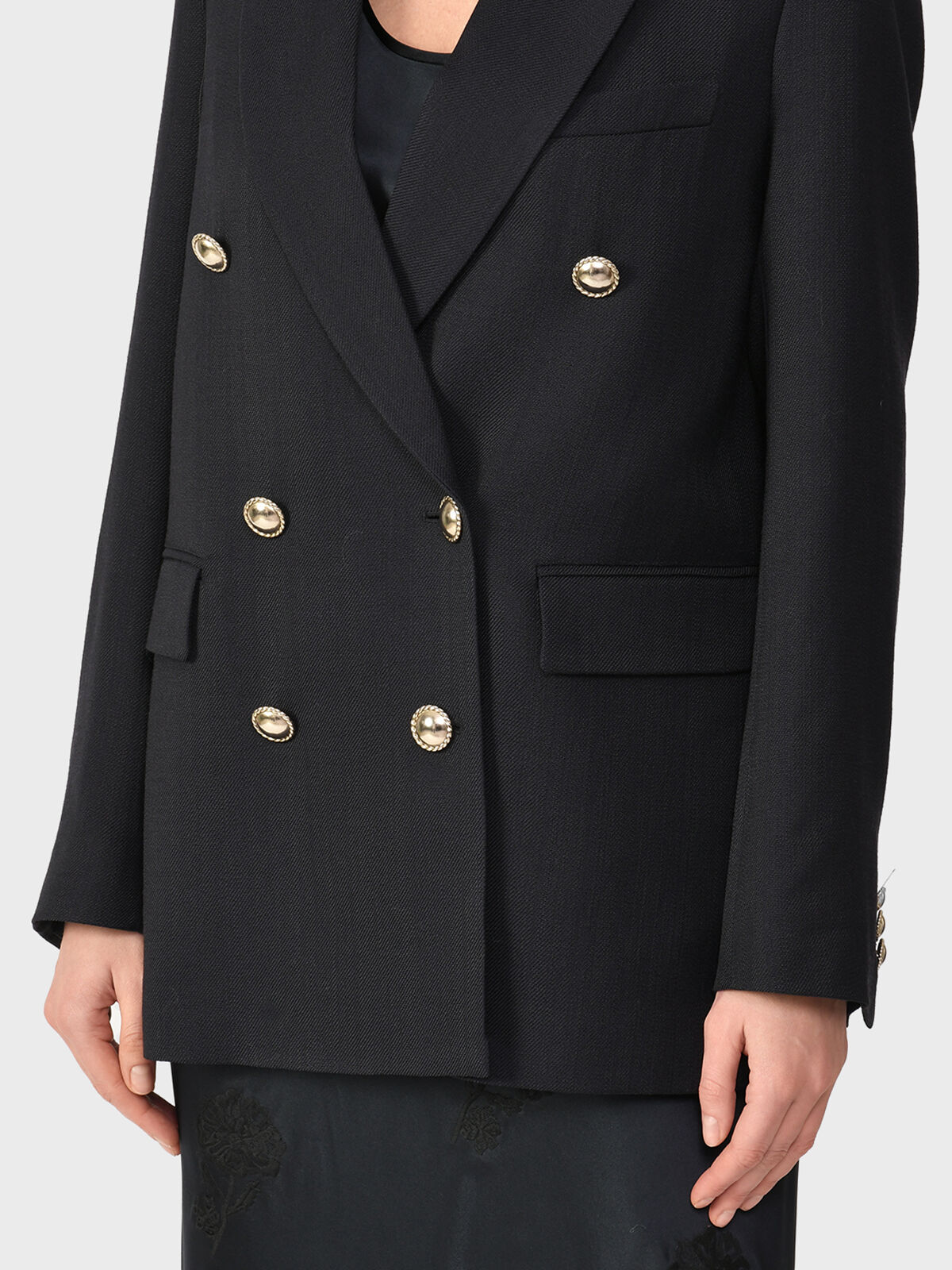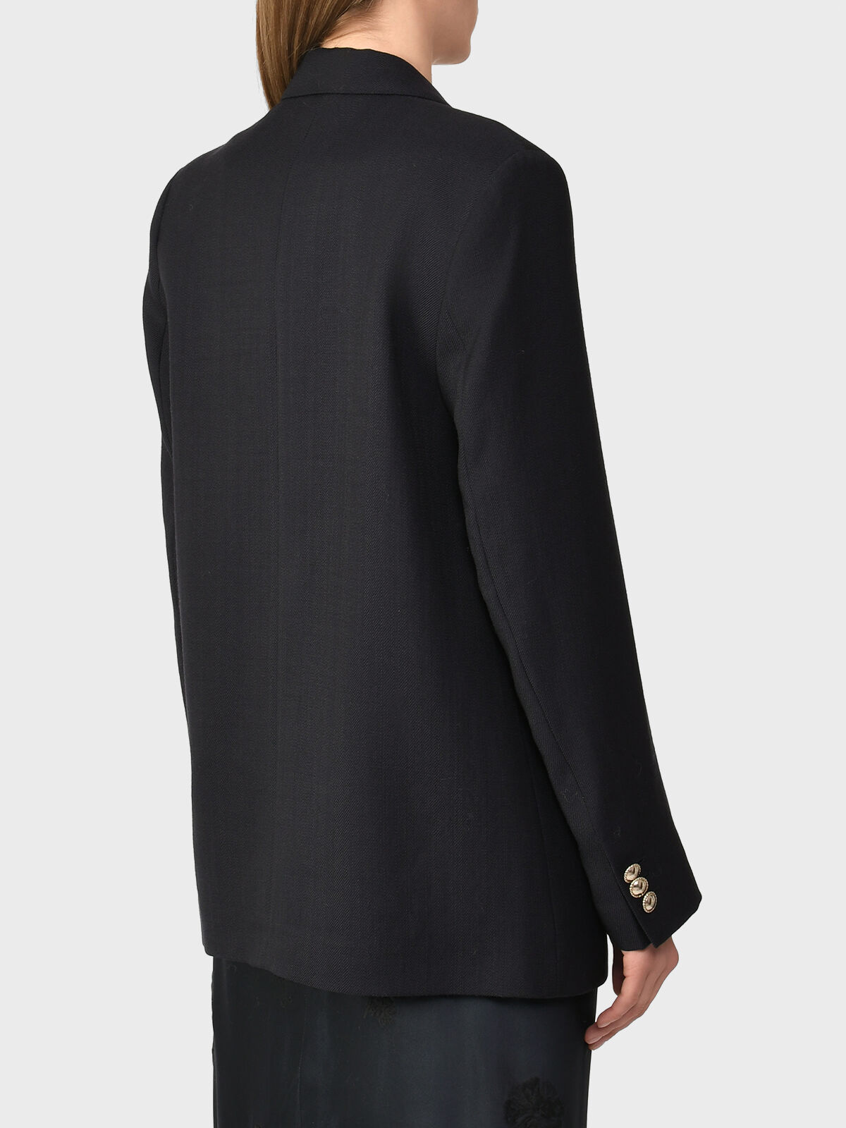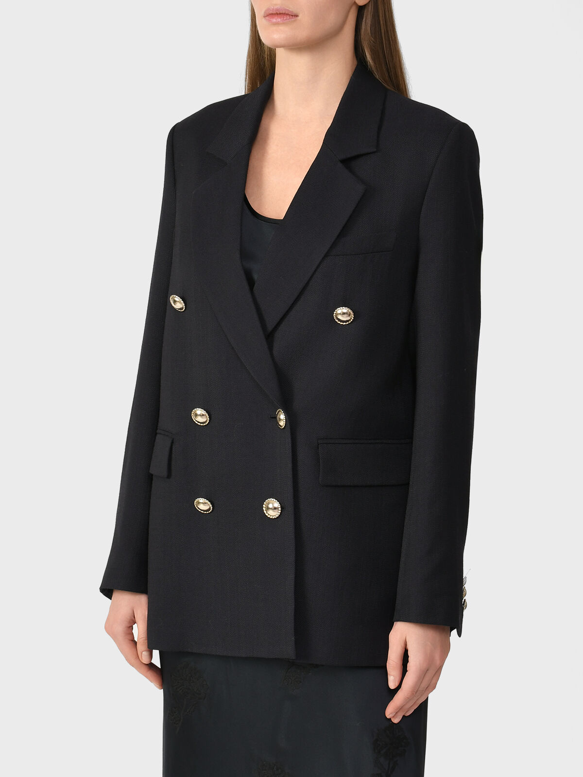 Элегантный двубортный пиджак с золотыми пуговицами — это must-have для современной горожанки. Вискоза, из которой он изготовлен, легкая, приятная на ощупь и обеспечивает комфорт и свободу движений. Его строгий, но при этом выразительный силуэт легко комбинируется с разными стилями, от делового до вечернего. Золотые пуговицы подчеркивают утонченность и становятся ярким акцентом в образе.
